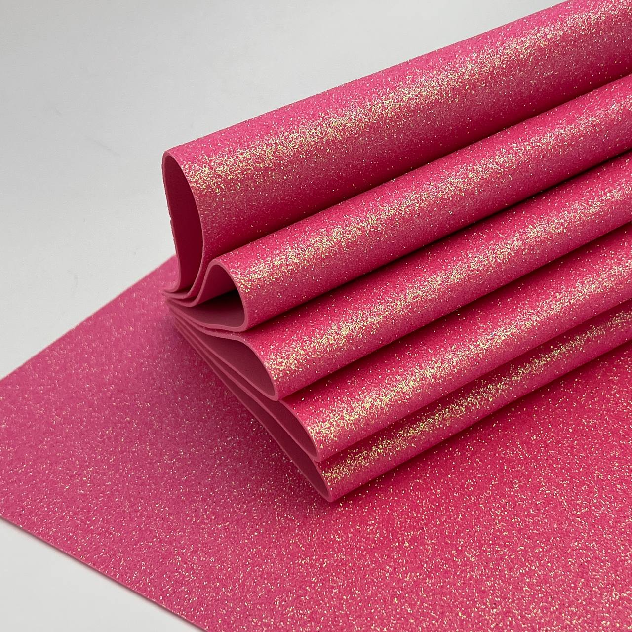 Глиттерный фоамиран - это пенка покрытая мелкими блёстками.Этот материал идеален для творчества,он легко режется, легко скручивается, не токсичен. Яркие листы подойдут для изготовления сувениров, аксессуаров для волос, объёмных поделок. В наборе А4 10 листов 2 мм