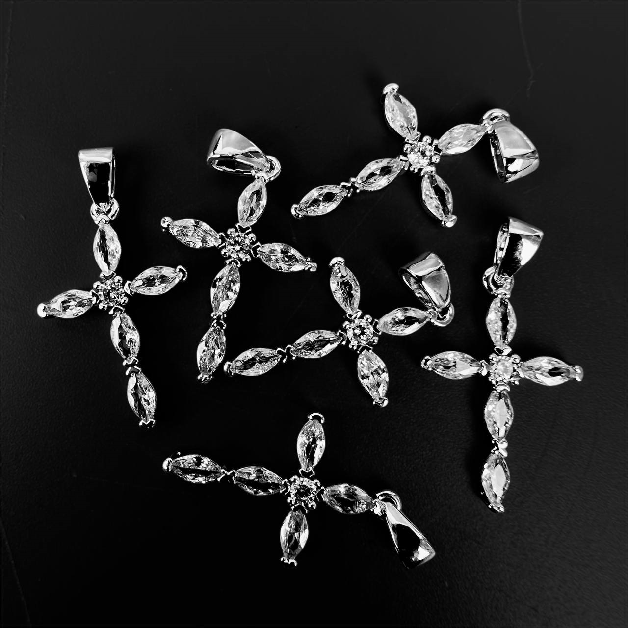 Подвеска крестик с белыми стразами родиевое покрытие 2 шт 22*14,5 мм серебро Korea
