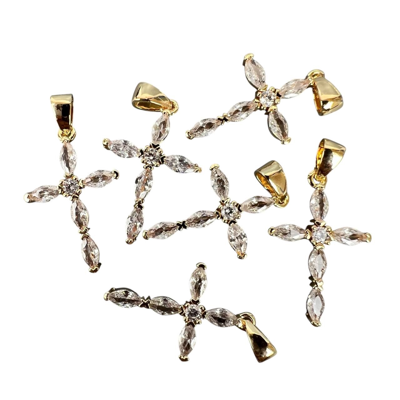 Подвеска-кулон родиевое покрытие "крестик" 22*14,5 мм 2 шт золото с белыми стразами Korea