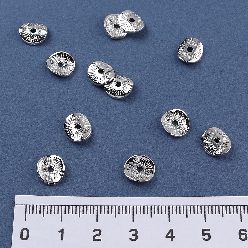Разделитель родиевое покрытие плоский круг 6*5 мм 20 шт серебро Korea