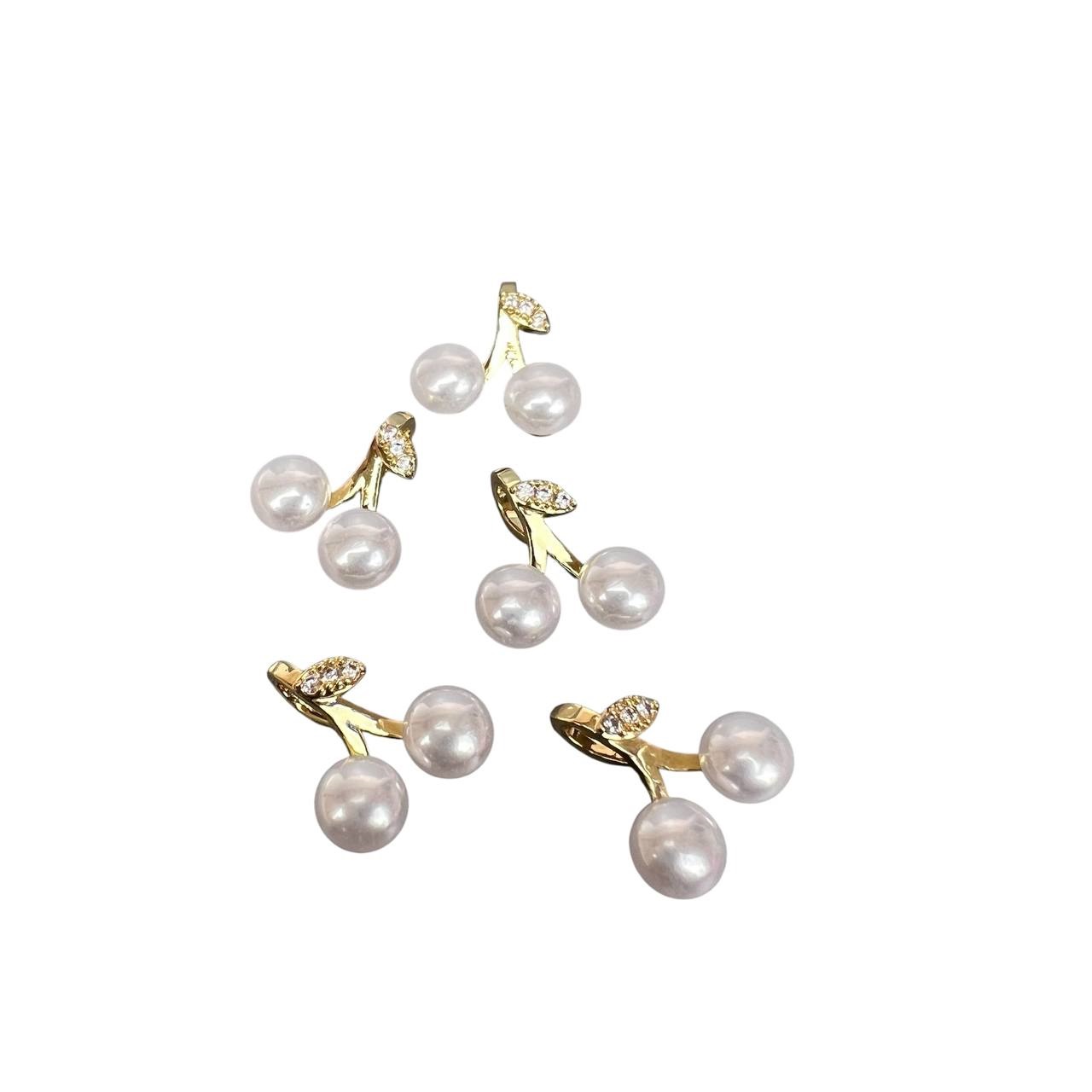 Подвеска-кулон "вишенка с жемчугом 2 шт золото родиевое покрытие Korea
