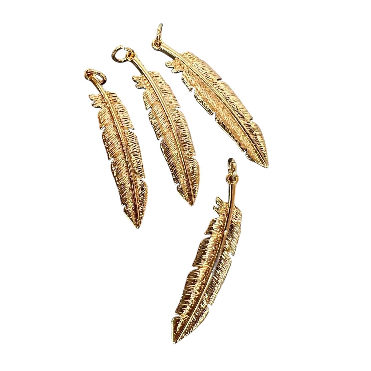 Подвеска-кулон "перо" 8*37 мм золото 4 шт родиевое покрытие Korea