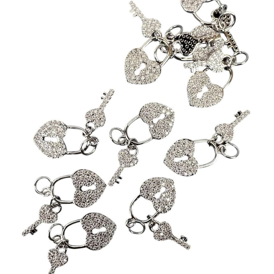 Подвеска ключик с замком сердечка из страз родиевое покрытие 2 шт серебро Korea