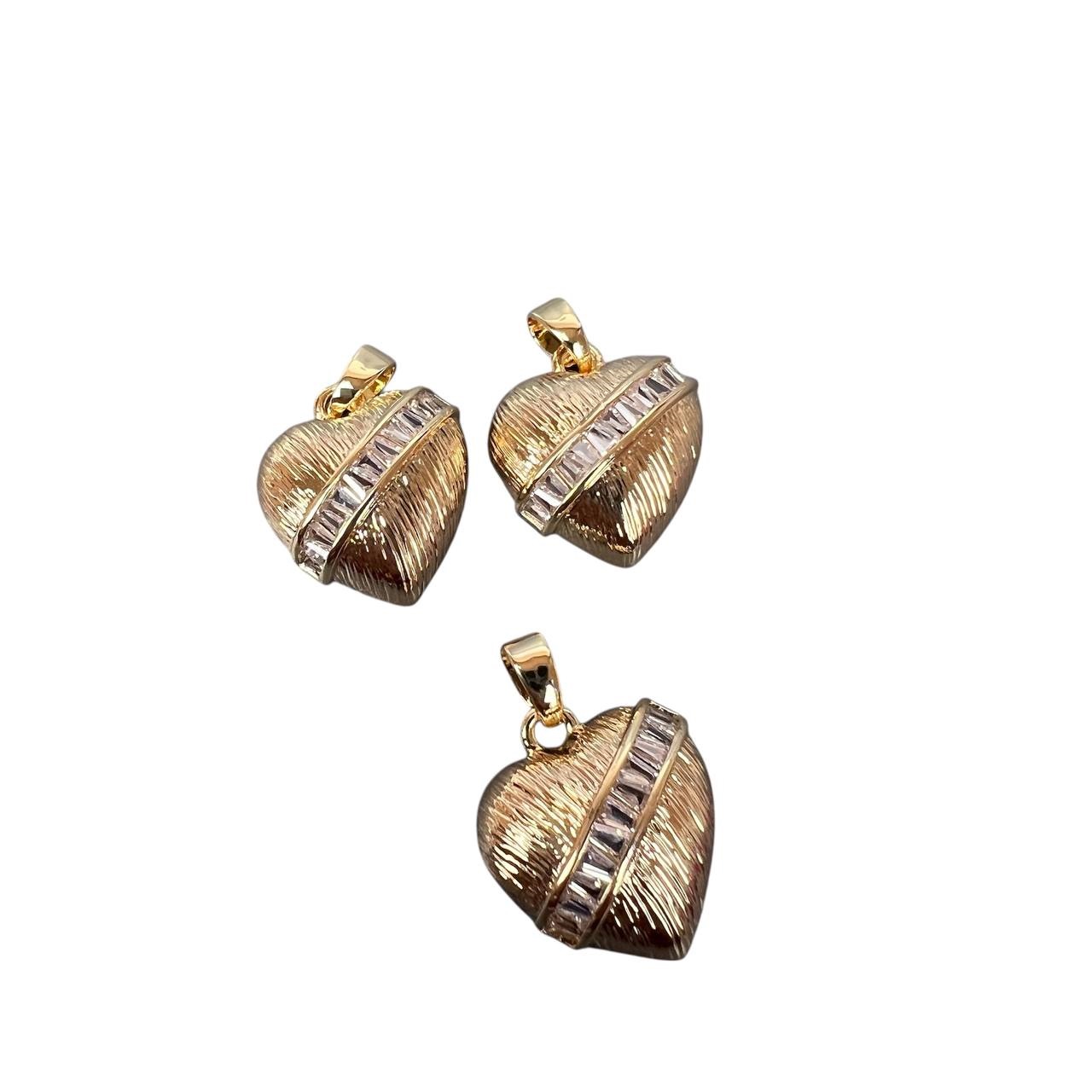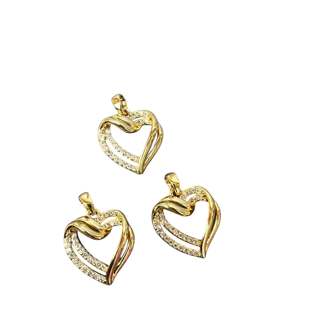 Подвеска-кулон родиевое покрытие "сердечко" 14*14,3 мм 2 шт золото со стразами  Korea
