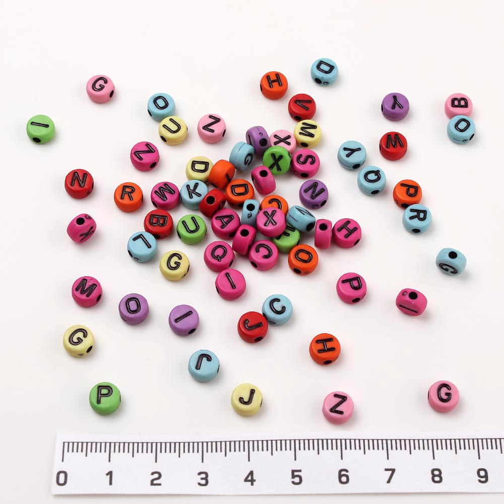 Бусины 6 мм 500 гр матовый микс круглые с чёрными буквами