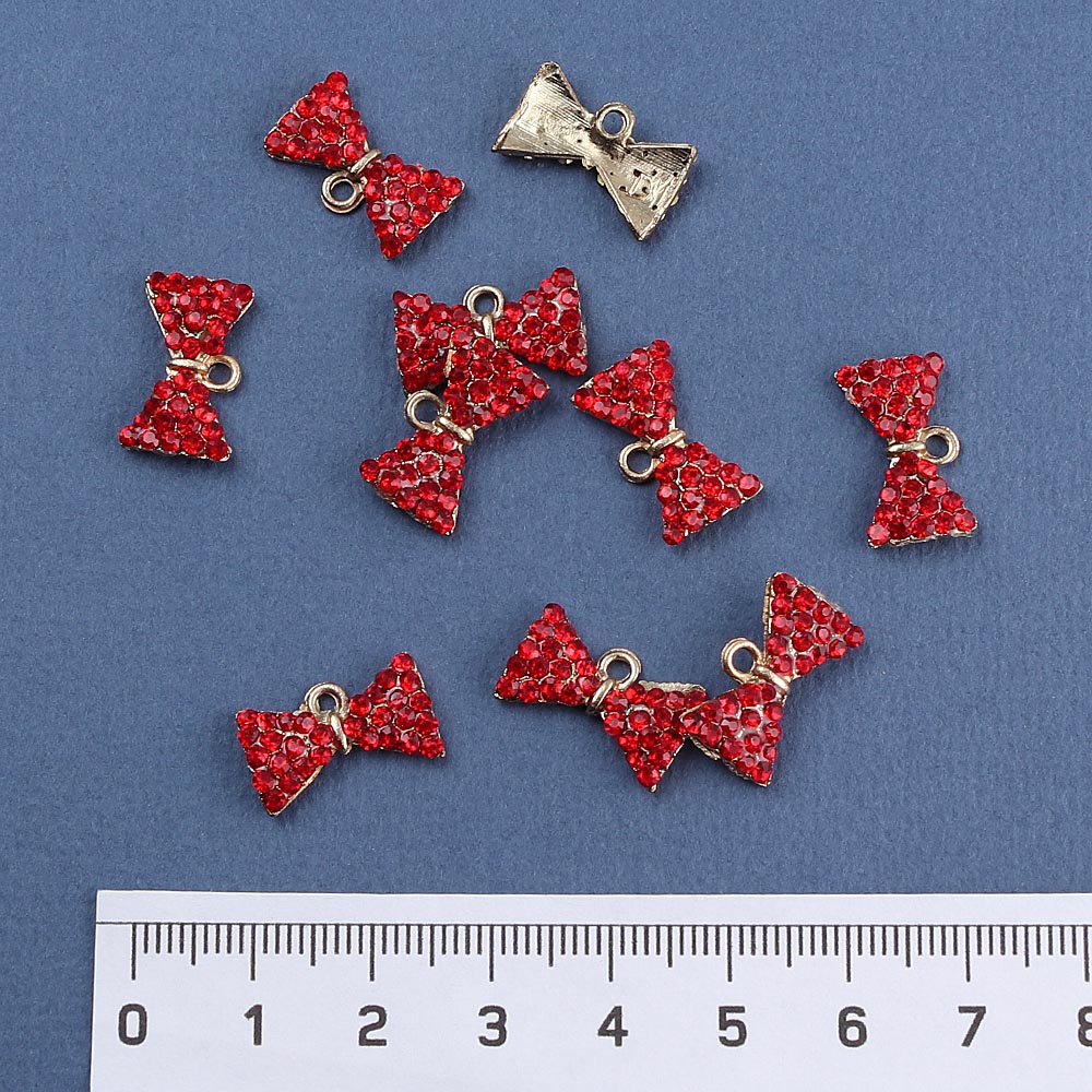 Подвеска металлическая для украшений бант с красными стразами16*9 мм 10 шт