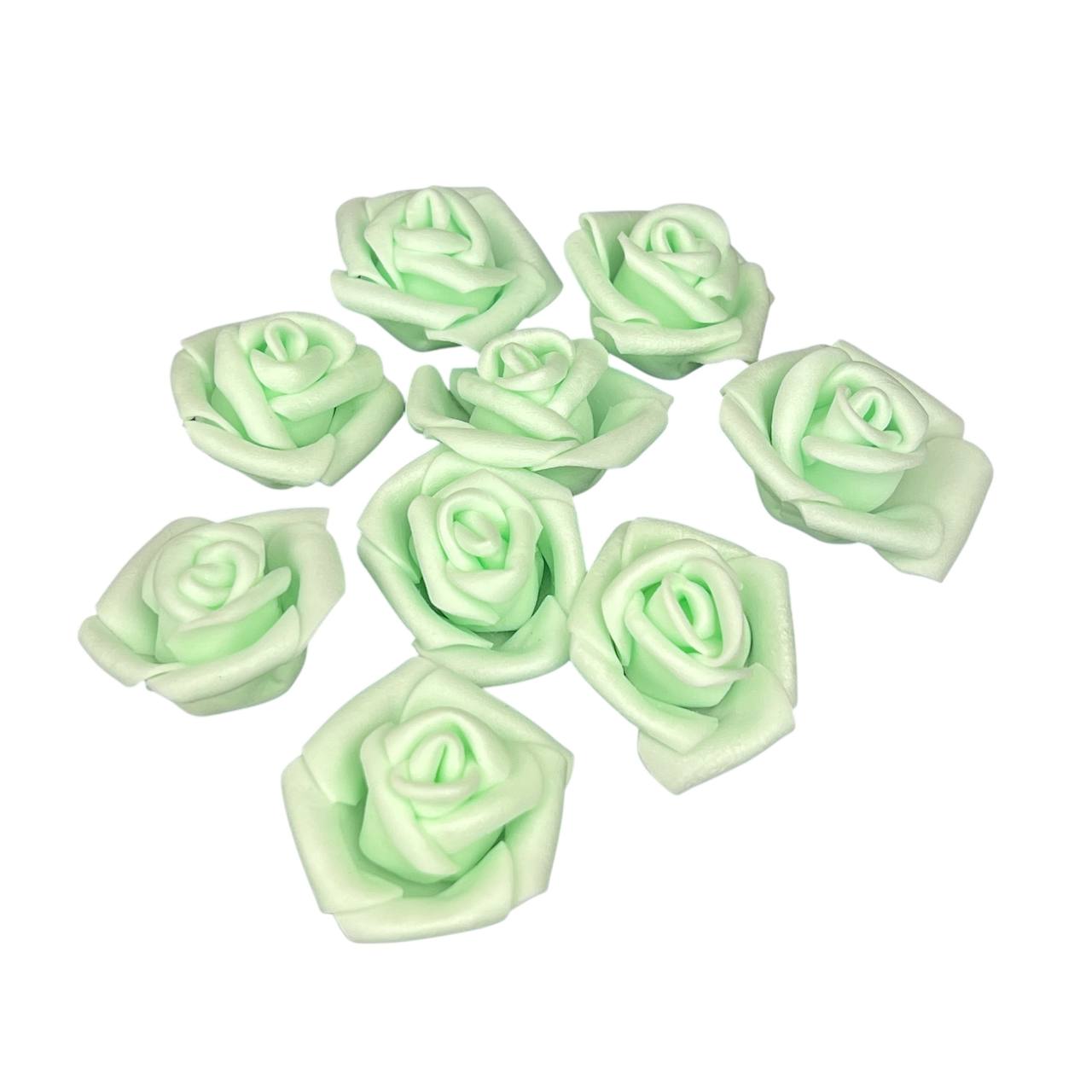 Роза из фоамирана 5 см 20 шт белый с салатовым