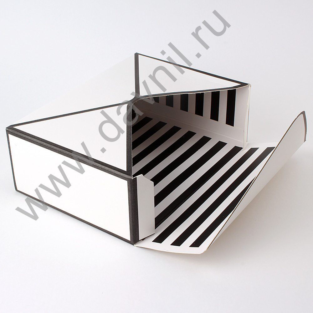 Коробка-конверт для цветов 12 шт. белая в чёрную полоску