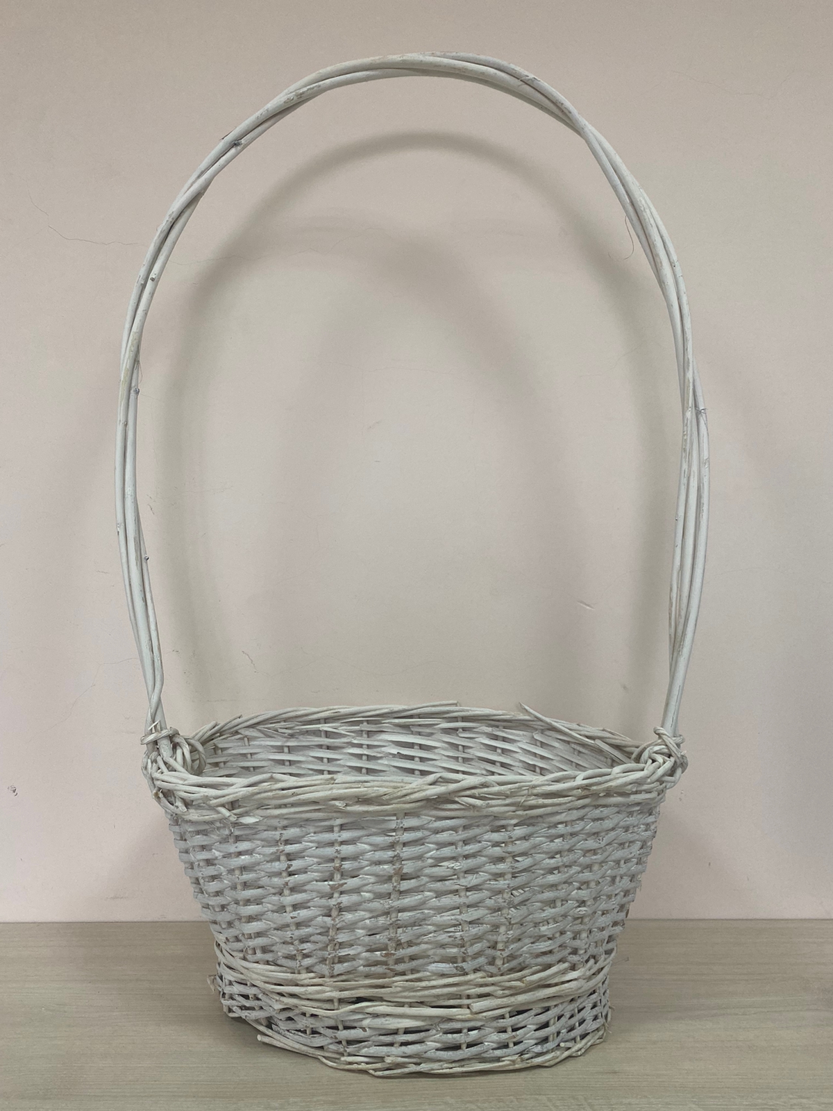 Корзина плетеная овальная 1 шт 40*27*73 см белая с высокой ручкой