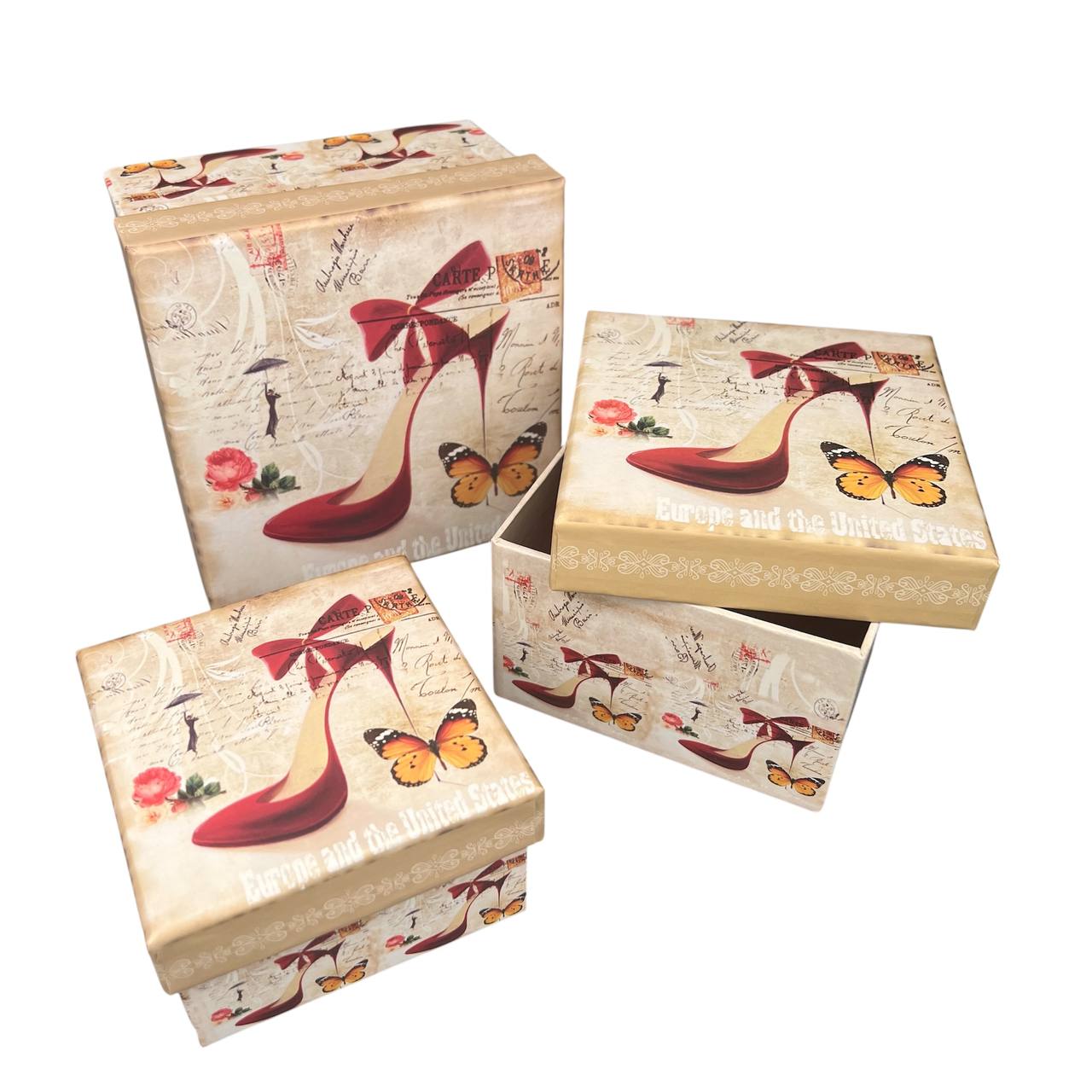Набор коробок 13,5*13,5*7,5 см 3 шт Бордовые туфельки