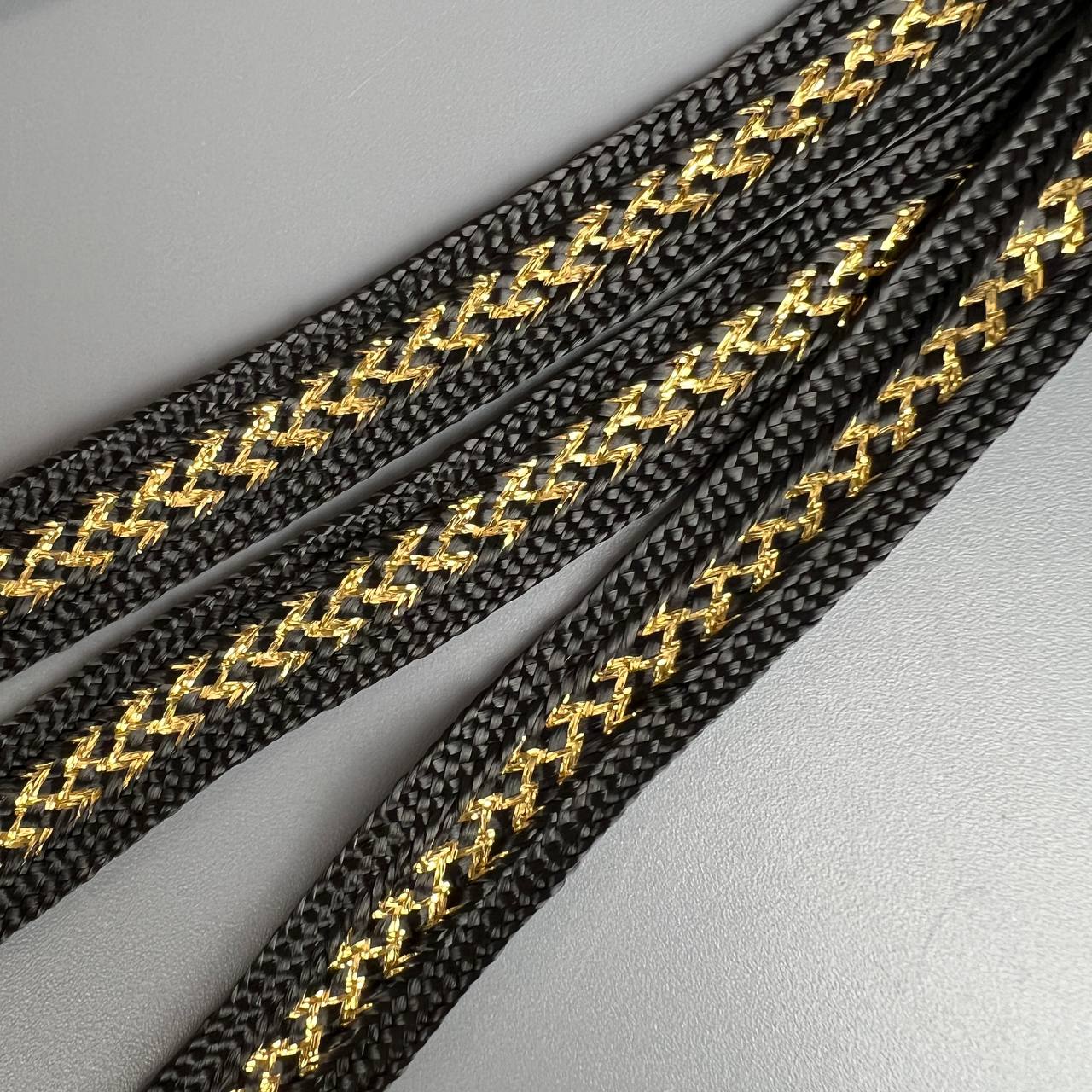 Тесьма 15 мм чёрная с золотом 10 ярдов