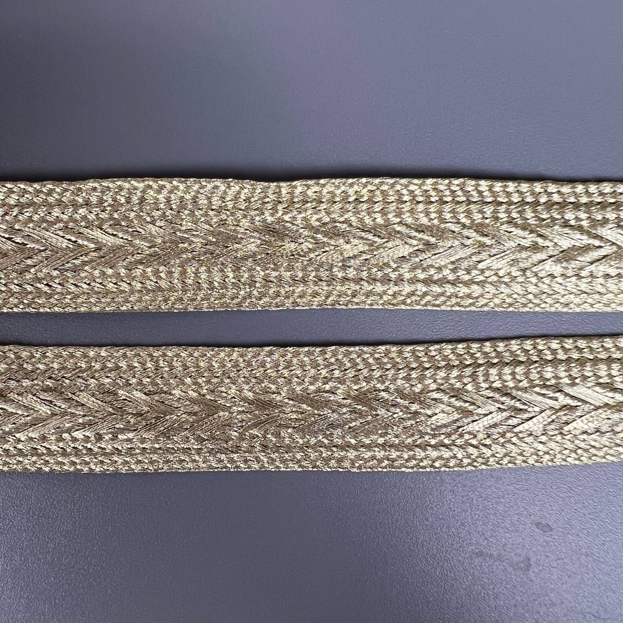 Тесьма 15 мм косичка бежевая с золотом 10 ярдов