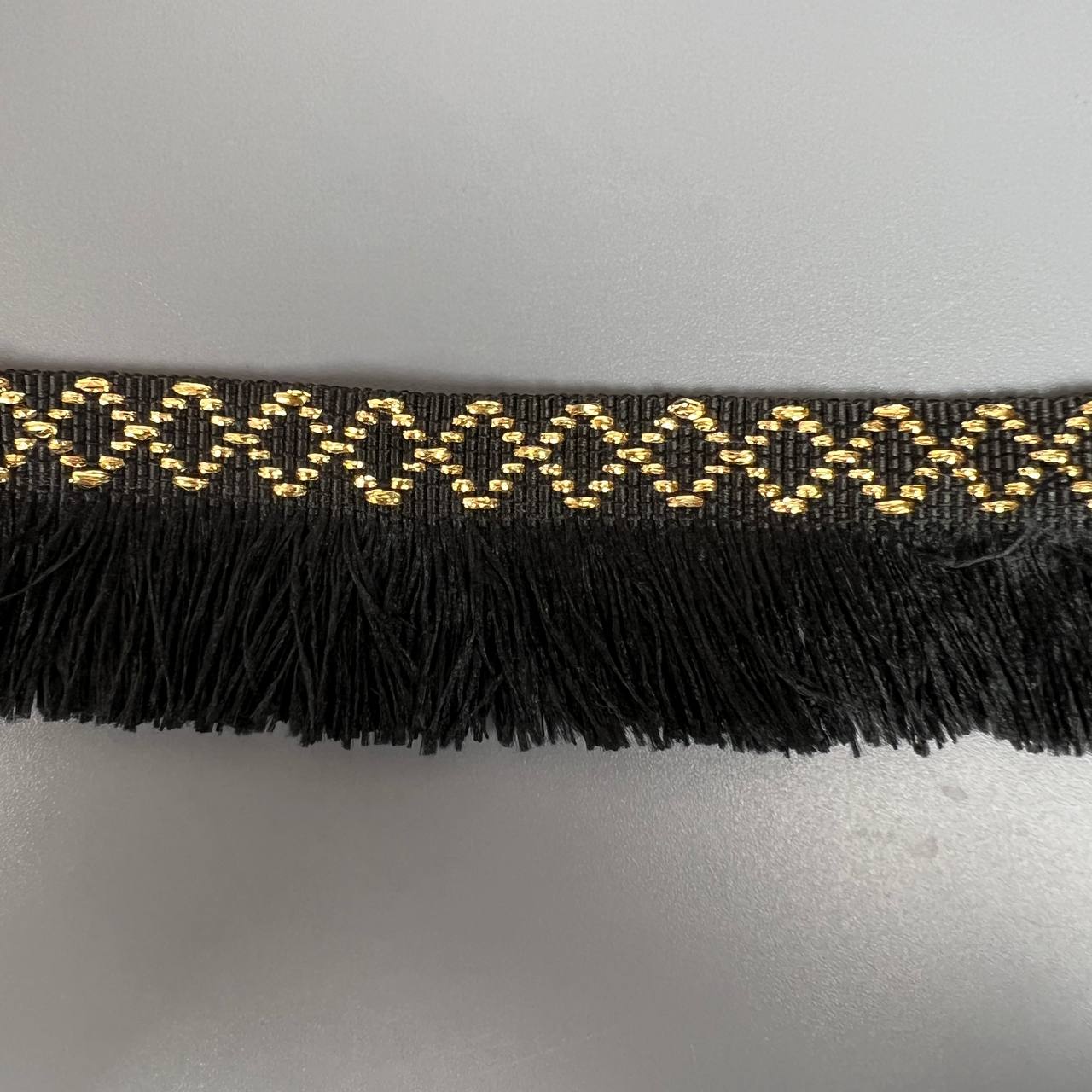 Тесьма 35 мм бахрома чёрная с золотом 10 ярдов