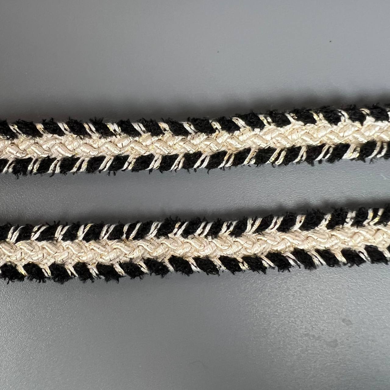 Тесьма 14 мм косичка бело-чёрная с золотой нитью 10 ярдов