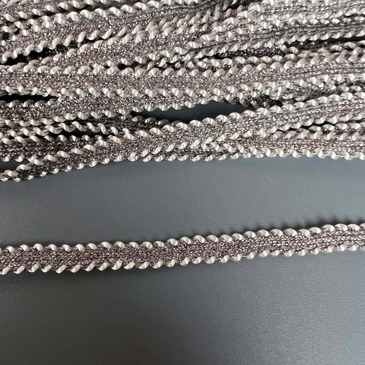 Тесьма 5 мм серая косичка с люриксом 10 ярдов