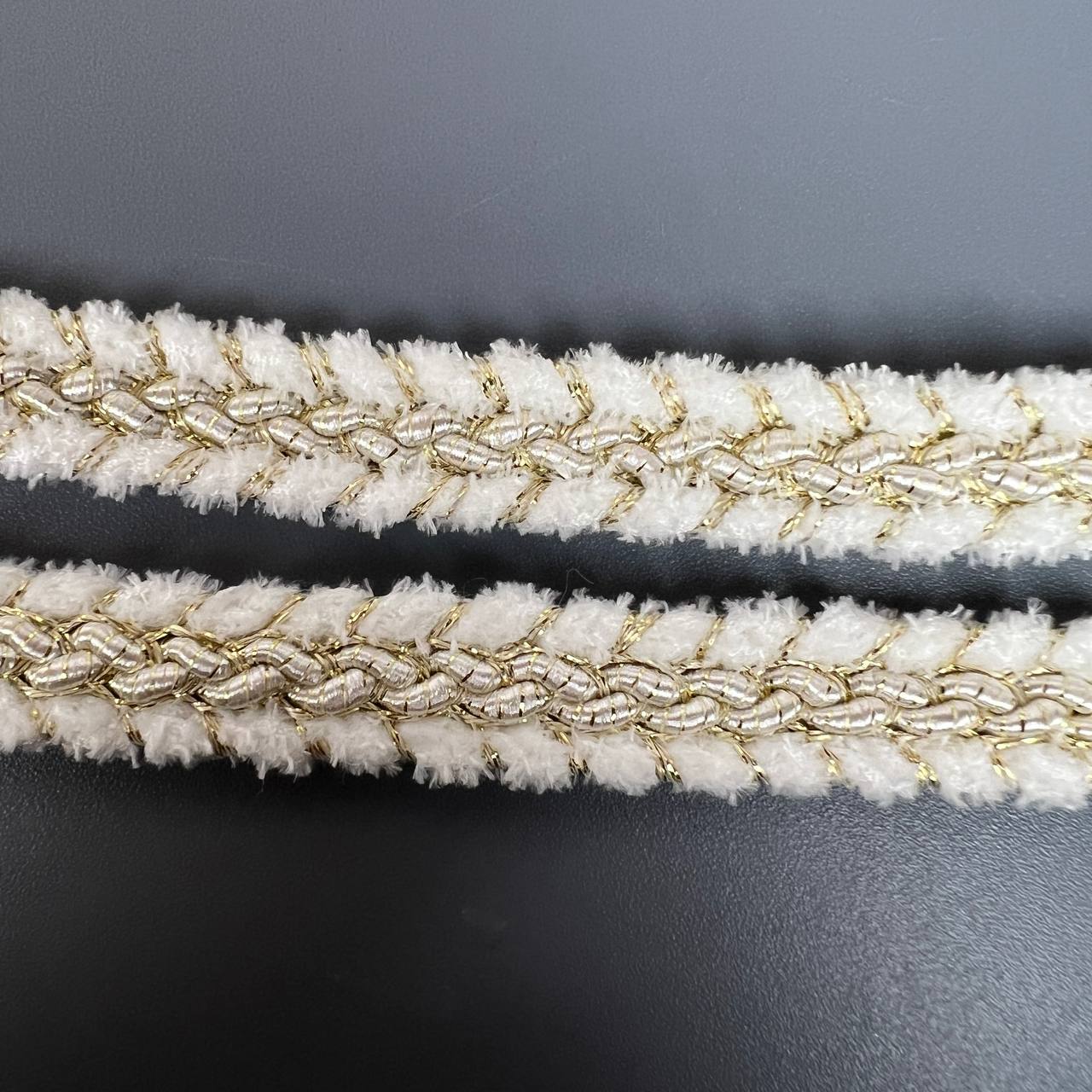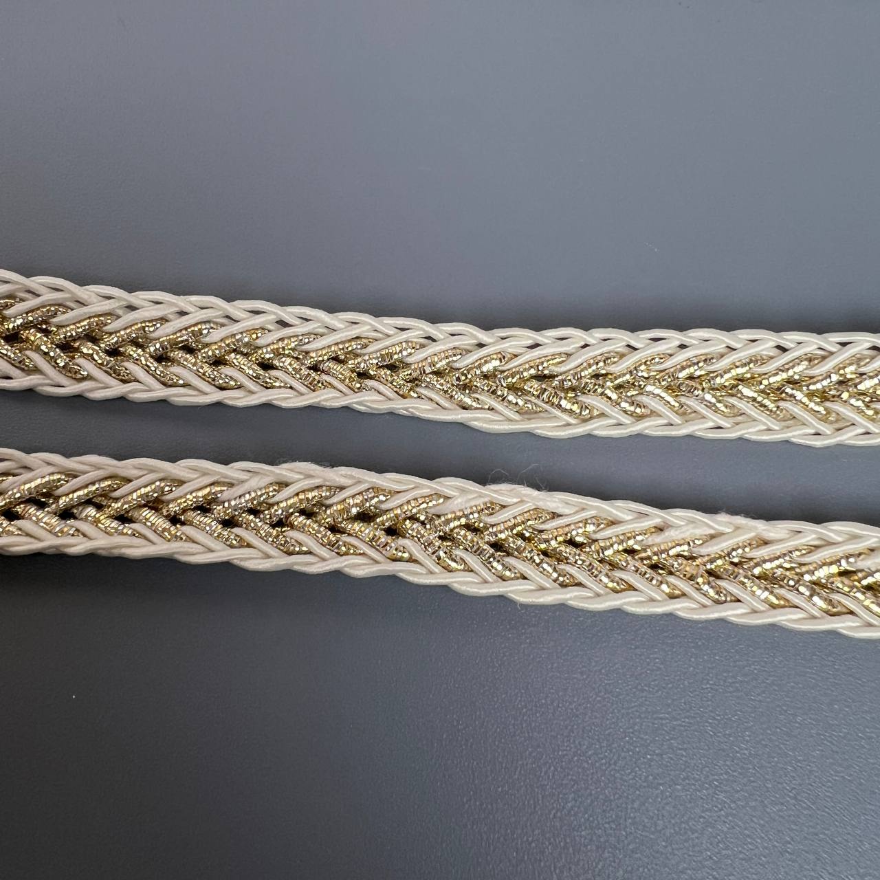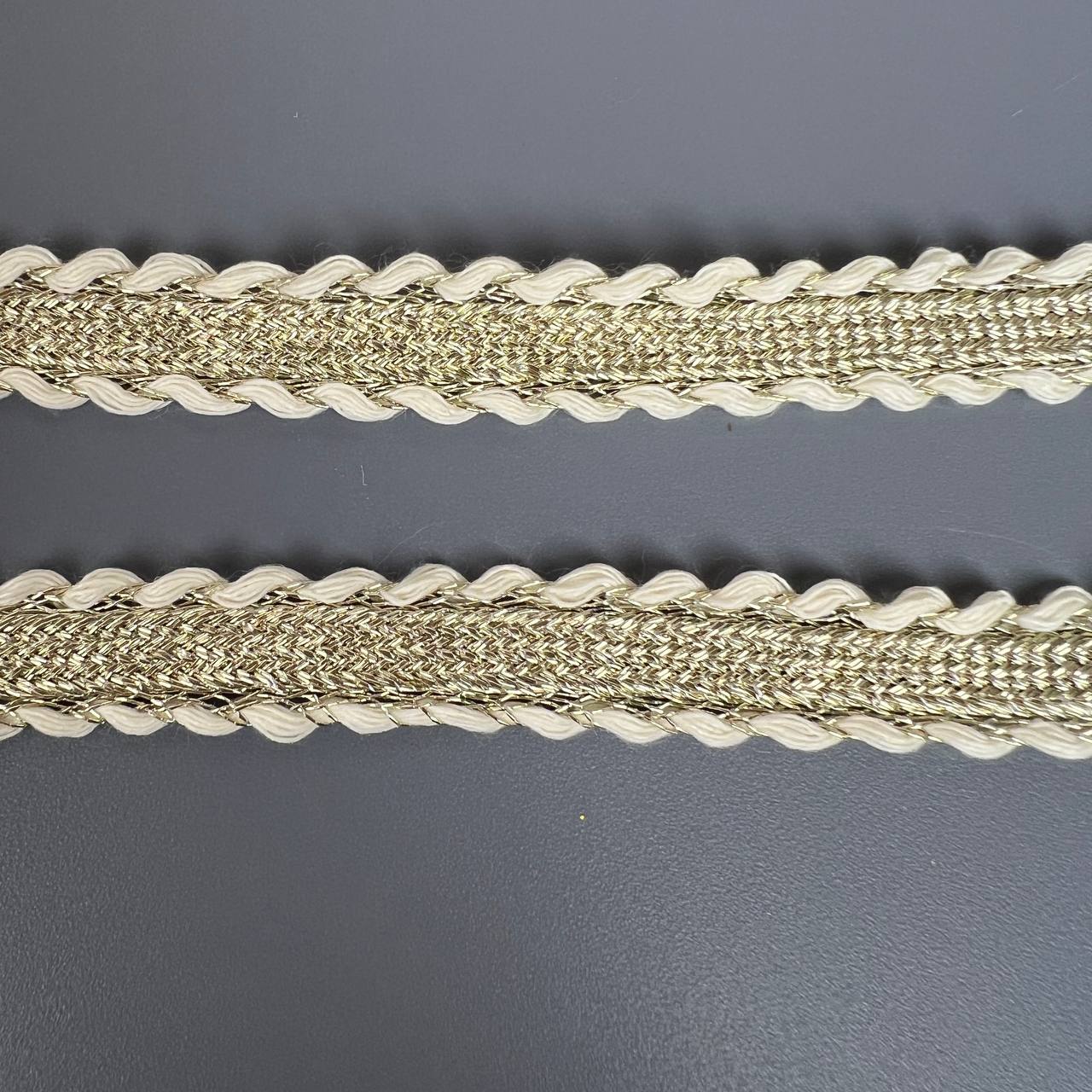 Тесьма 12 мм косичка белая с золотой нитью 10 ярдов