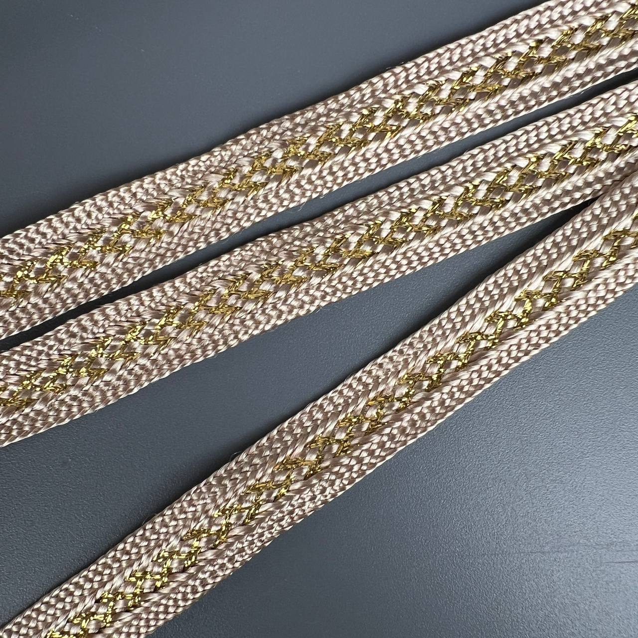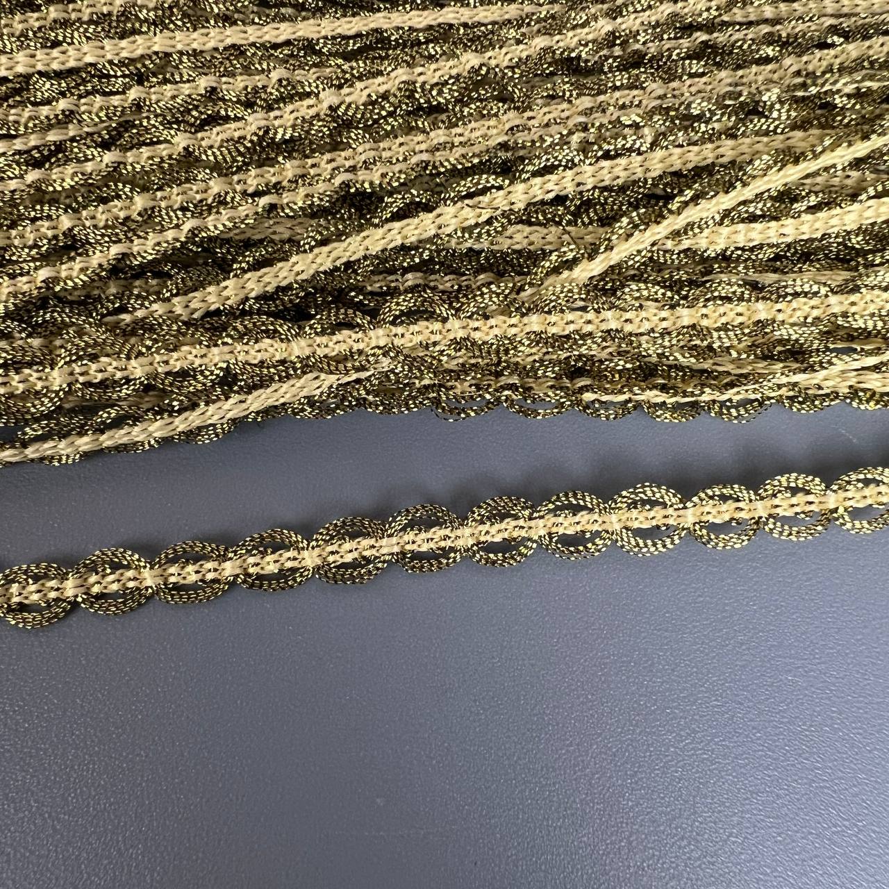 Тесьма 5 мм светлое золото косичка с люриксом 10 ярдов