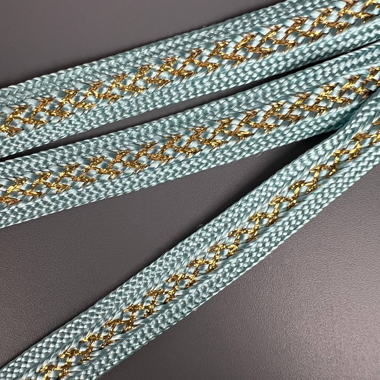 Тесьма 15 мм голубая с золотом 10 ярдов