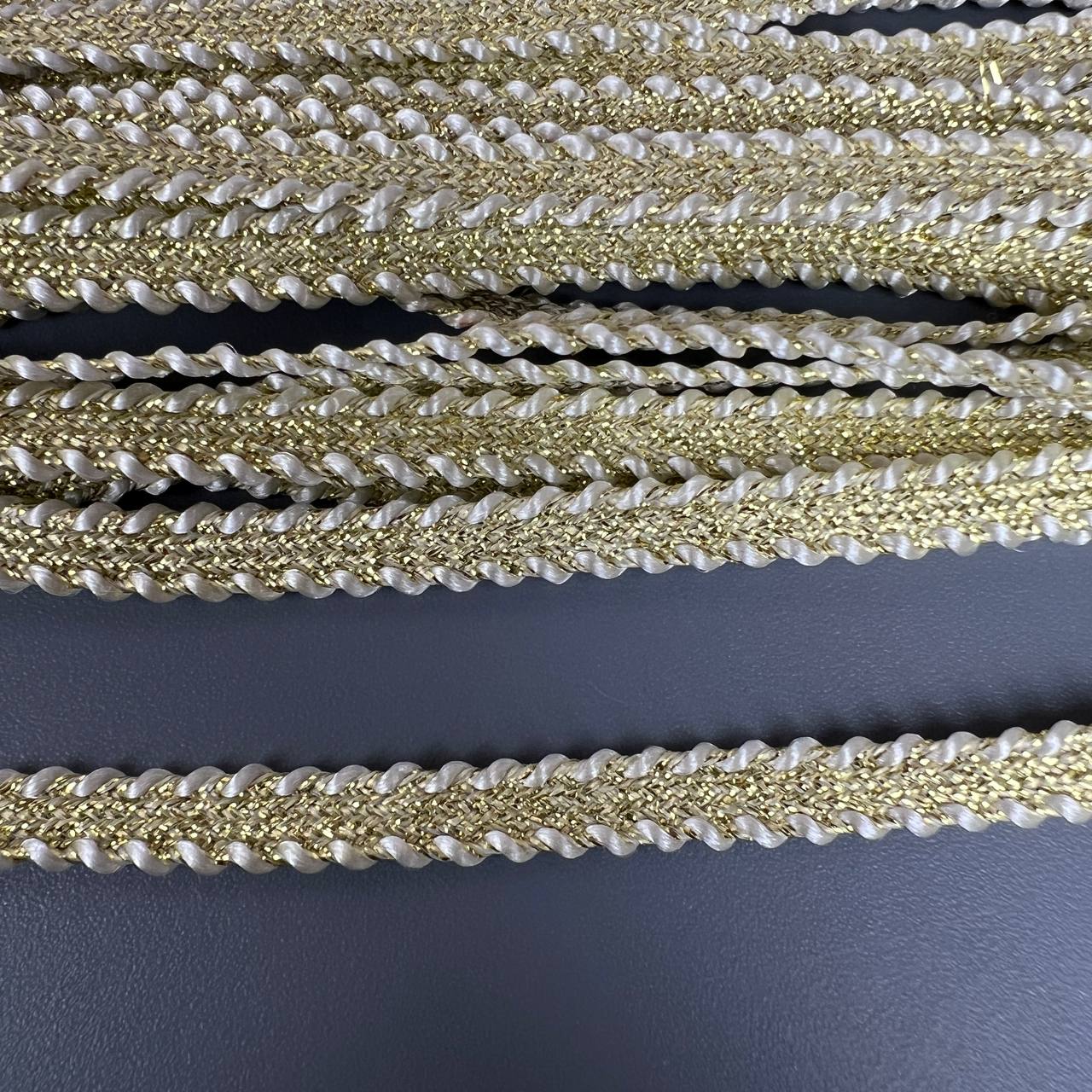 Тесьма 10 мм косичка белая с золотом 10 ярдов