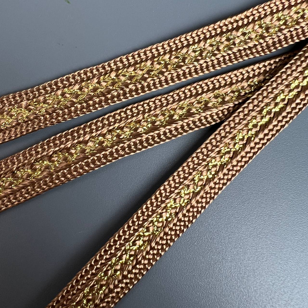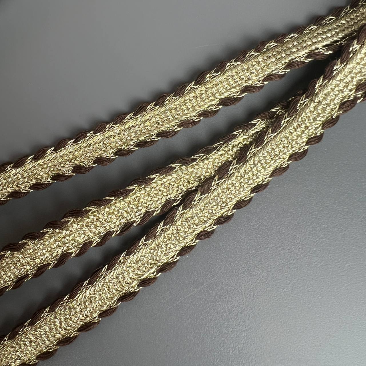 Тесьма 14 мм коричневая с золотом 10 ярдов