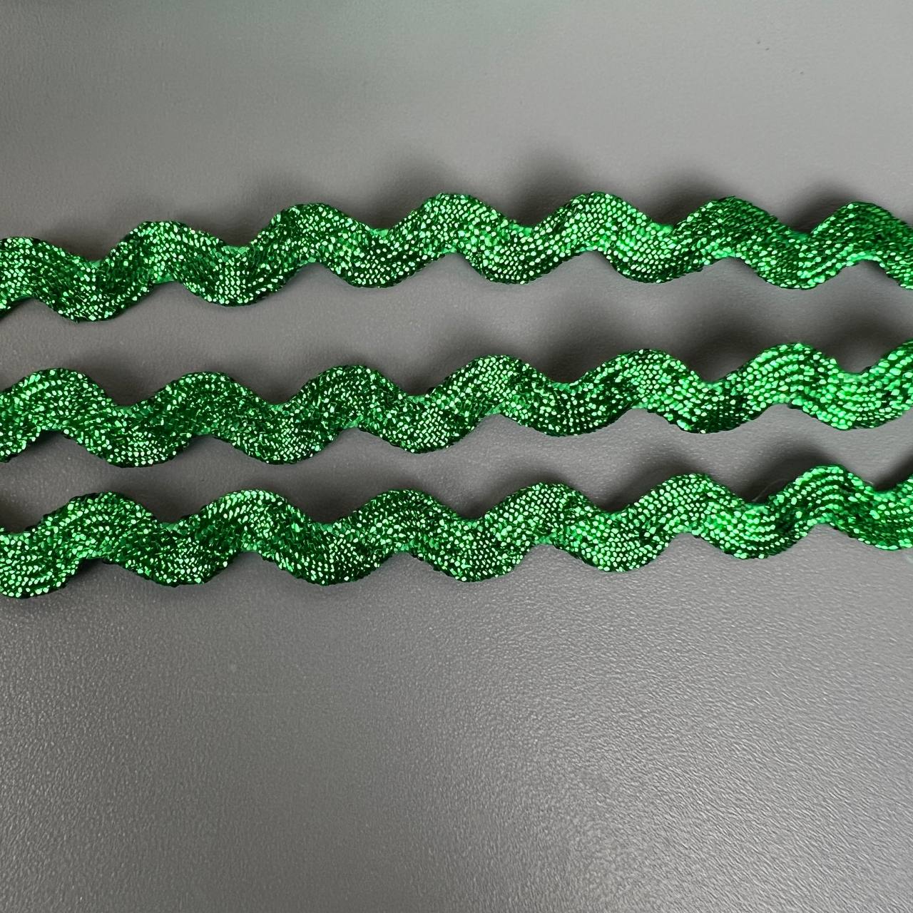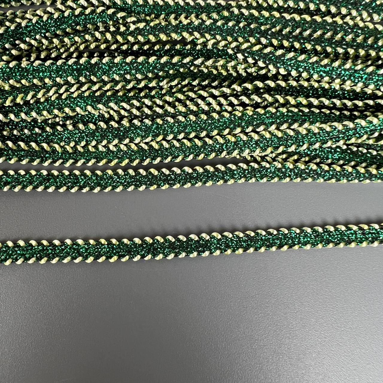 Тесьма вьюнок 0,5 см 25 ярдов зелёная с люриксом 4