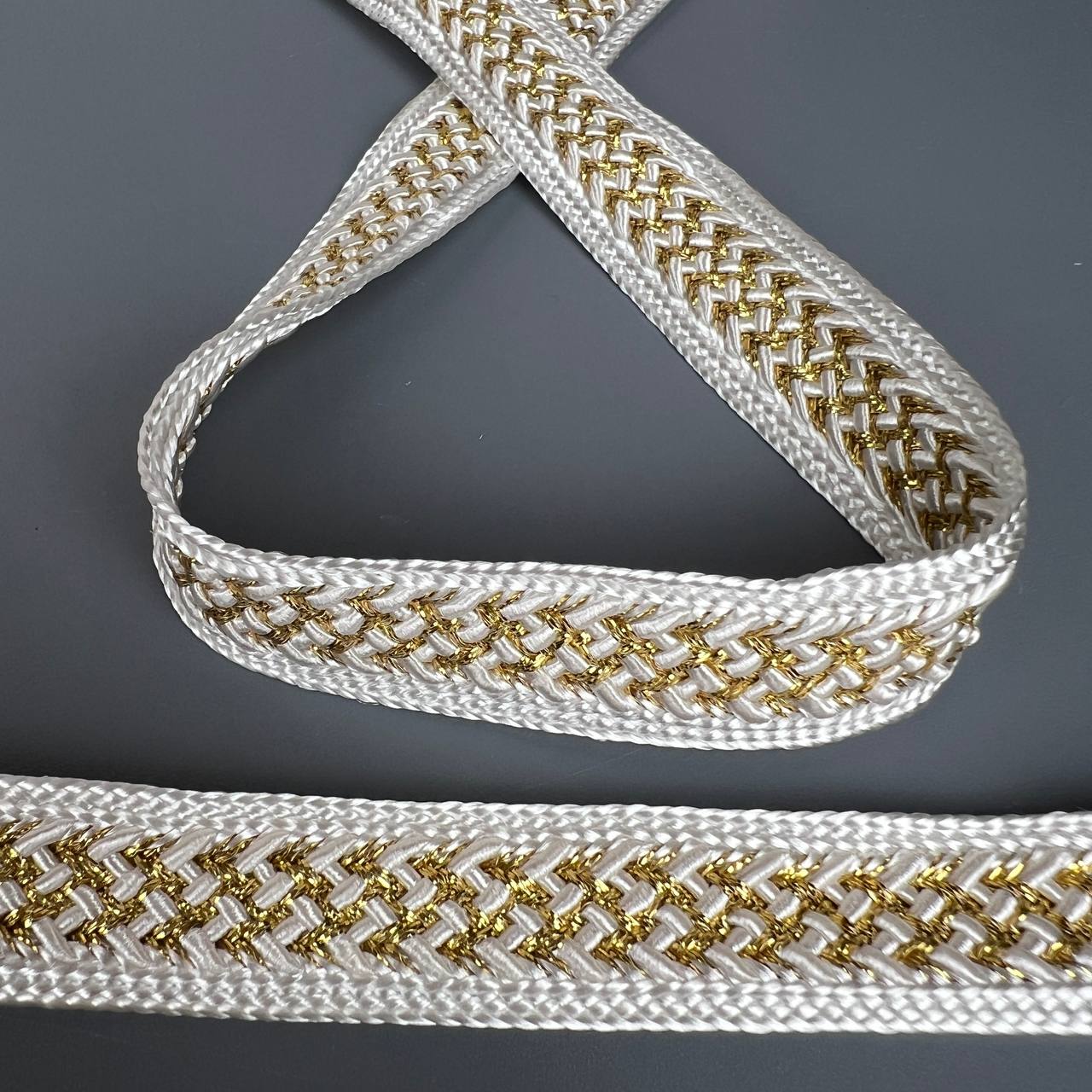Тесьма 12 мм косичка айвори с золотой нитью 10 ярдов