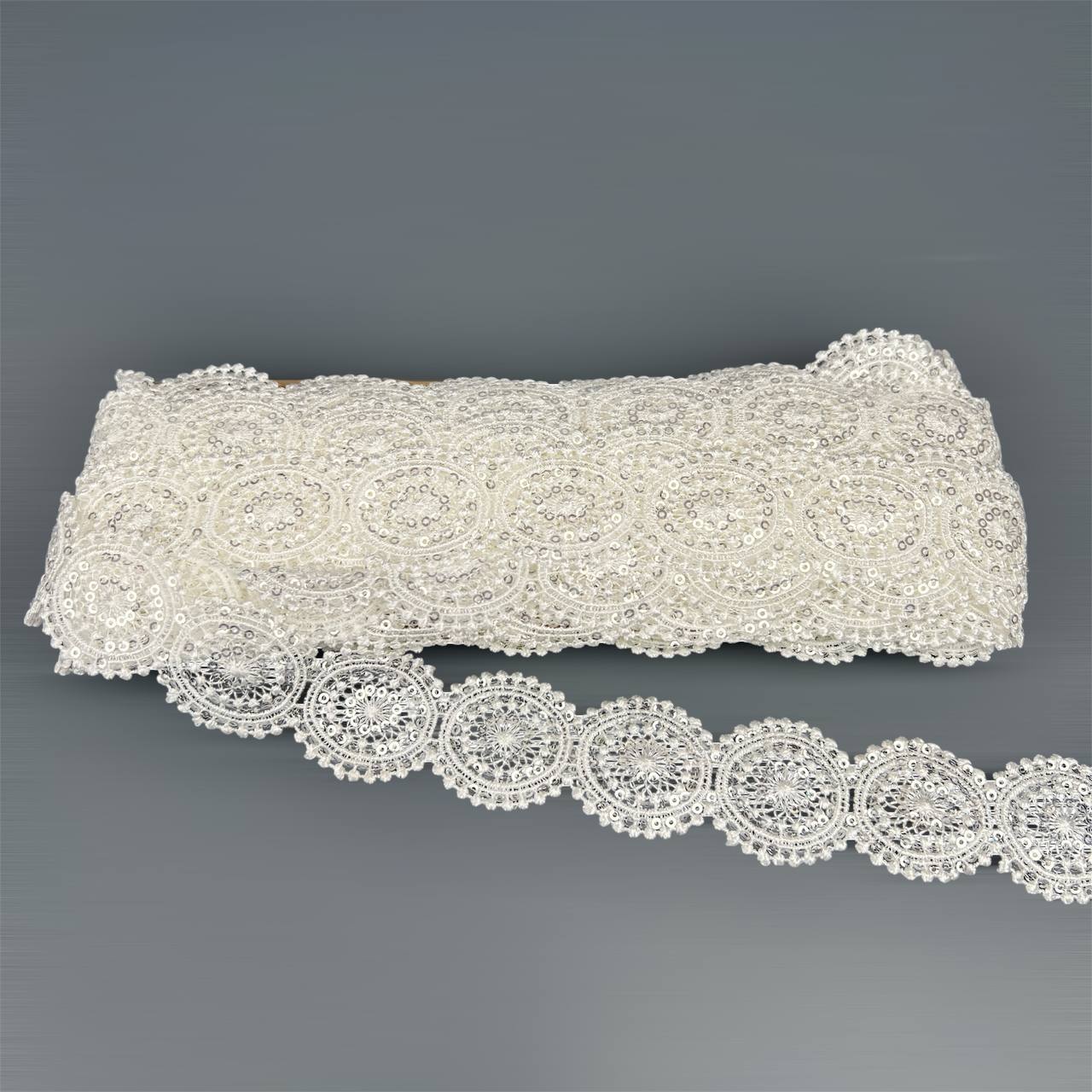 Кружево 2 см ажурный цветочек с пайетками 9 м белое №94