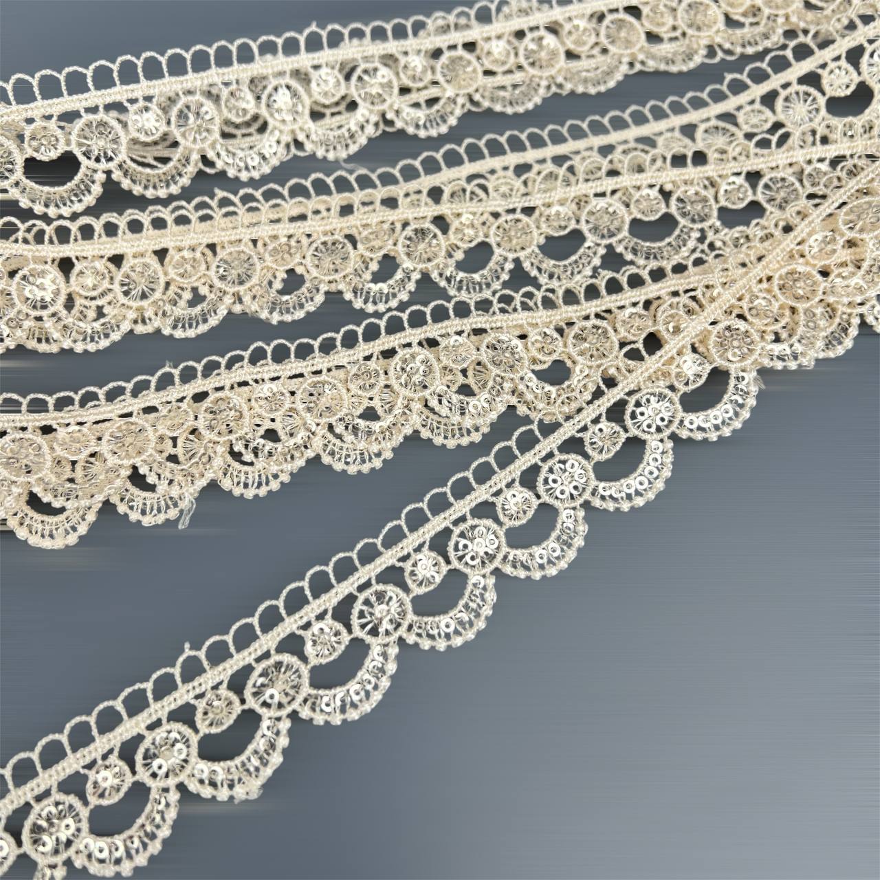 Кружево 2,3 см ажурное 9 м бежевое с пайетками №101