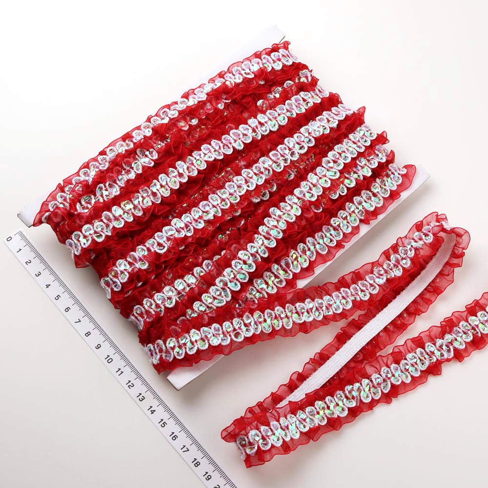 Тесьма 2,5 см 10 ярдов рюшечка из органзы красная 2