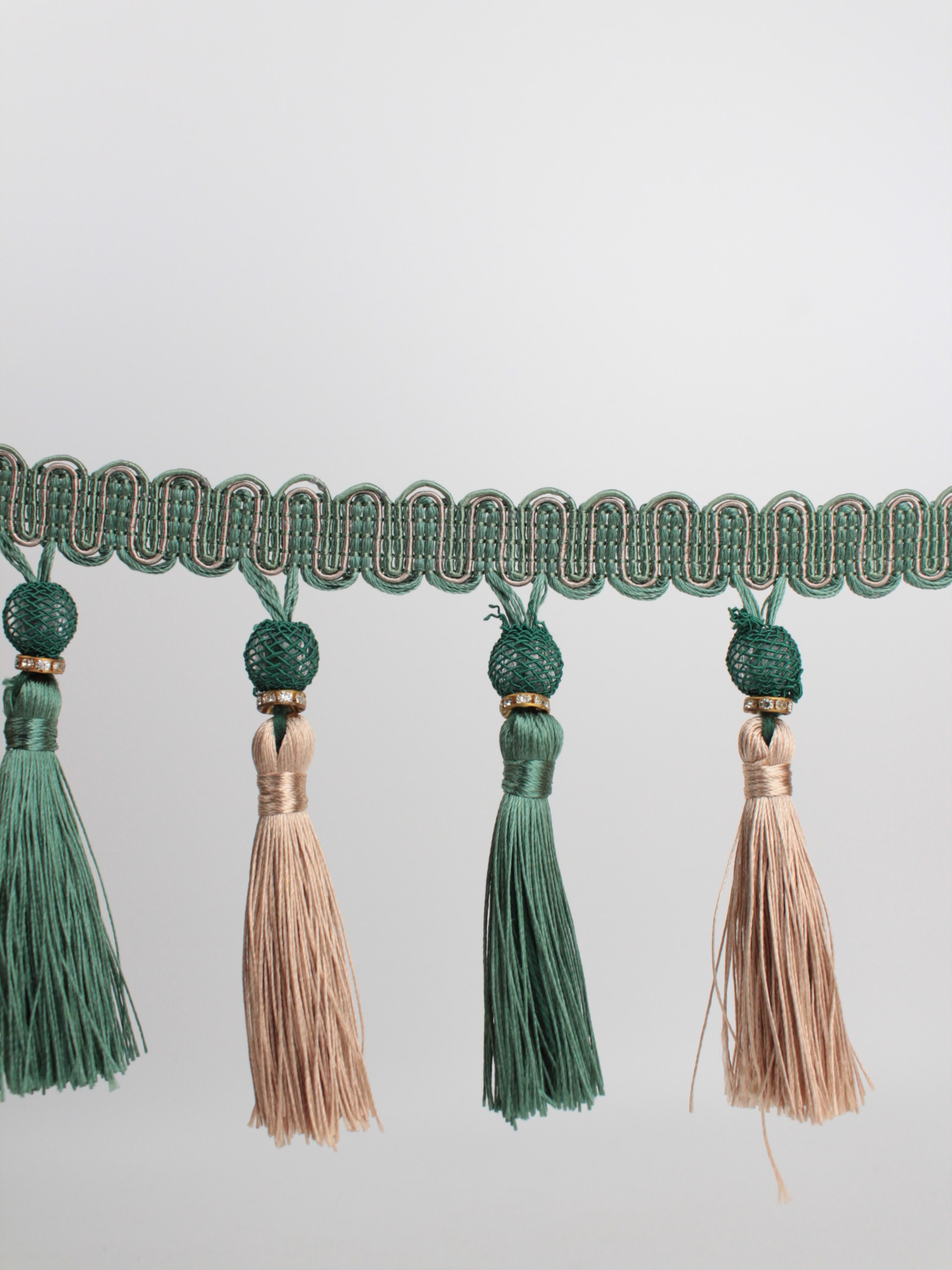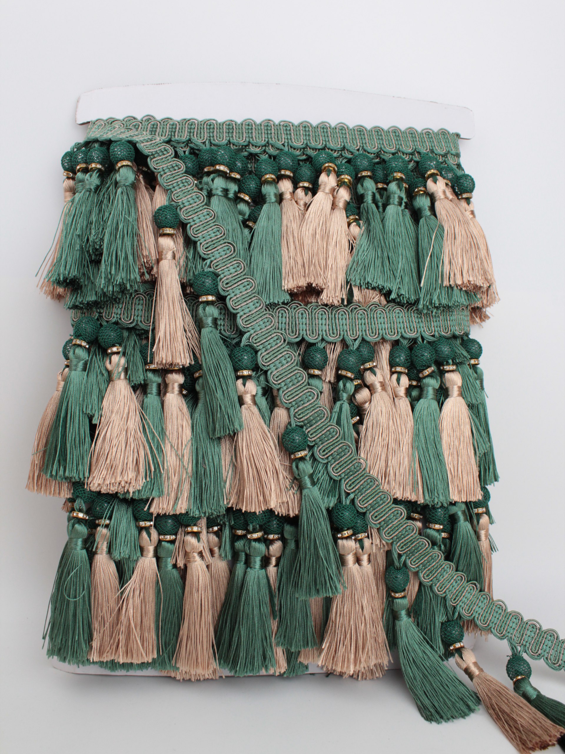 Бахрома шторная 12 м с кисточкой 12 см бежево-зеленая