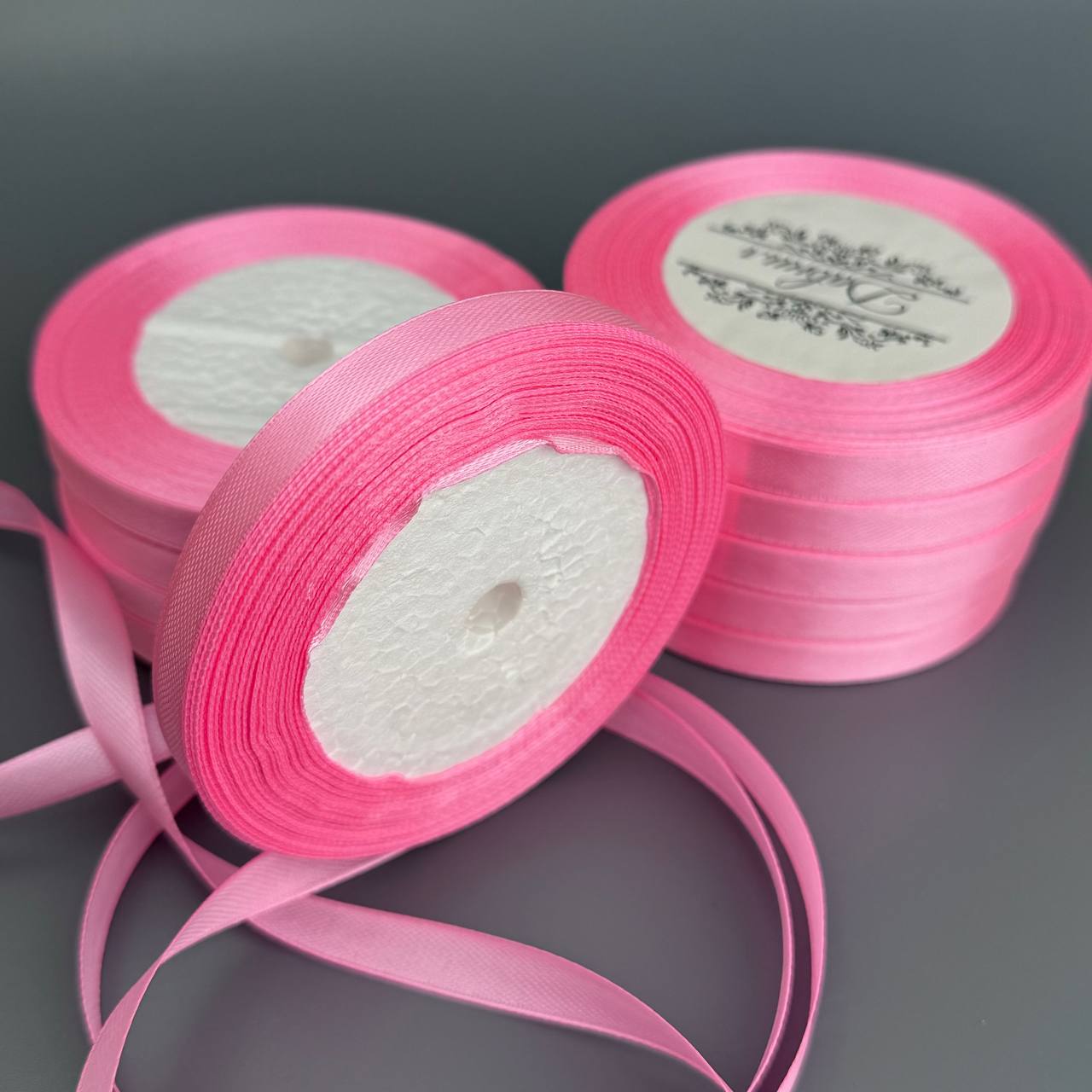 Лента атласная 0,6 см*25 ярдов розовая 077