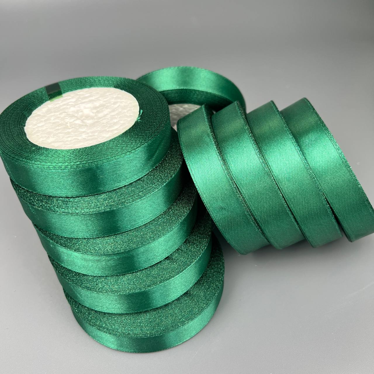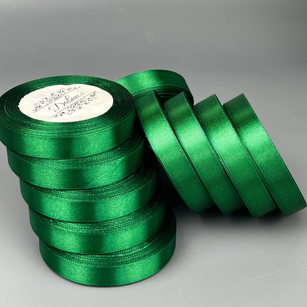 Лента атласная 1,5 см 25 ярдов зелёная 056