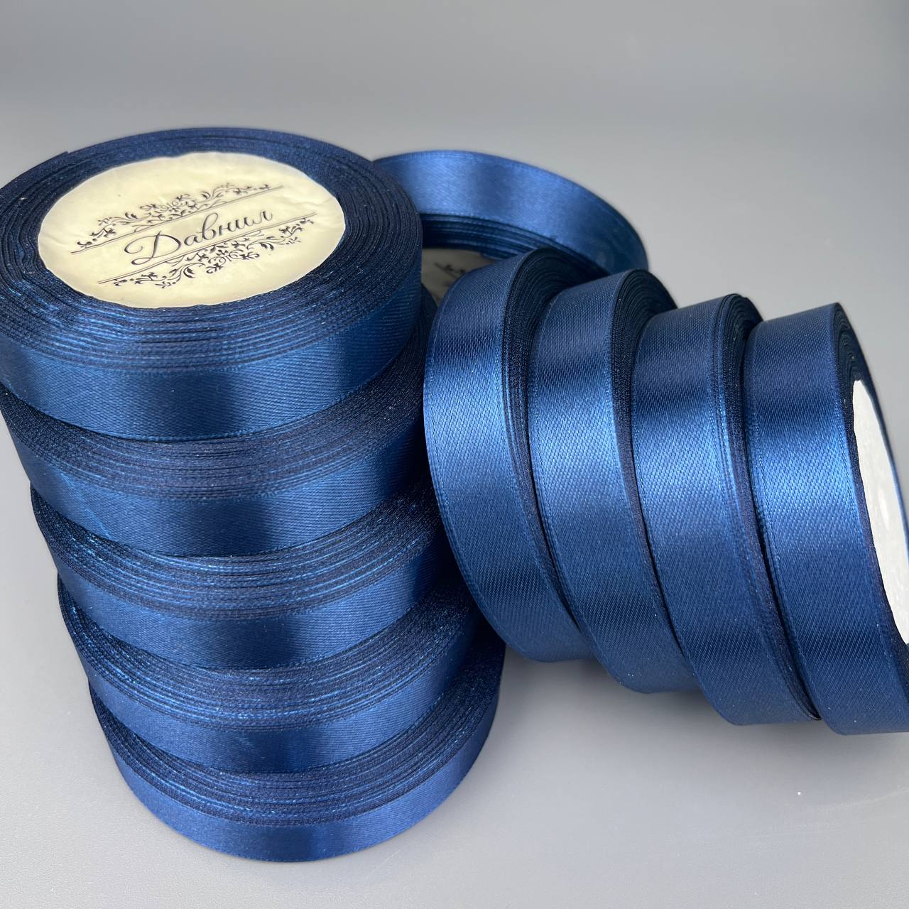 Лента атласная 1,5 см 25 ярдов синяя 040