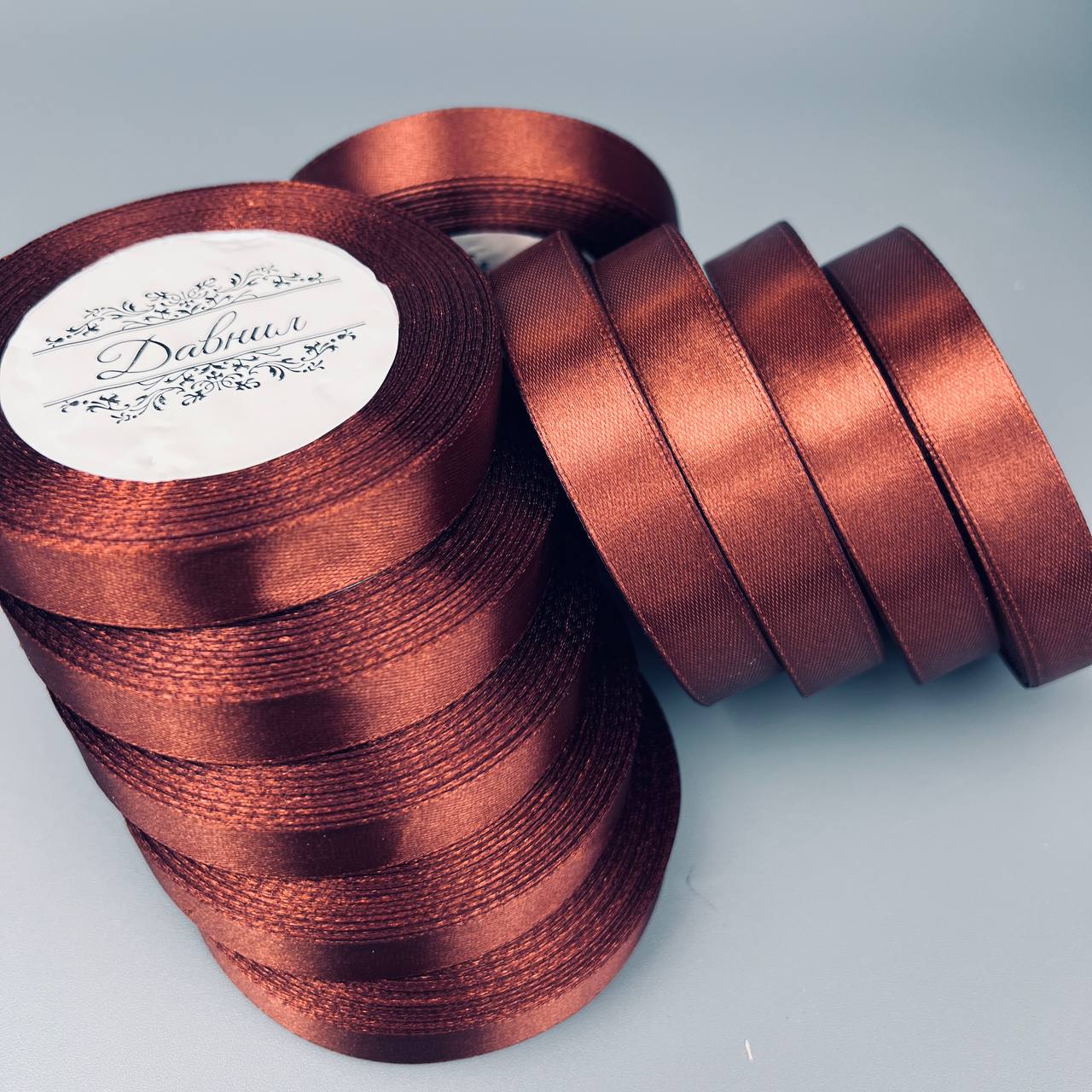 Лента атласная 1,5 см 25 ярдов коричневая 067