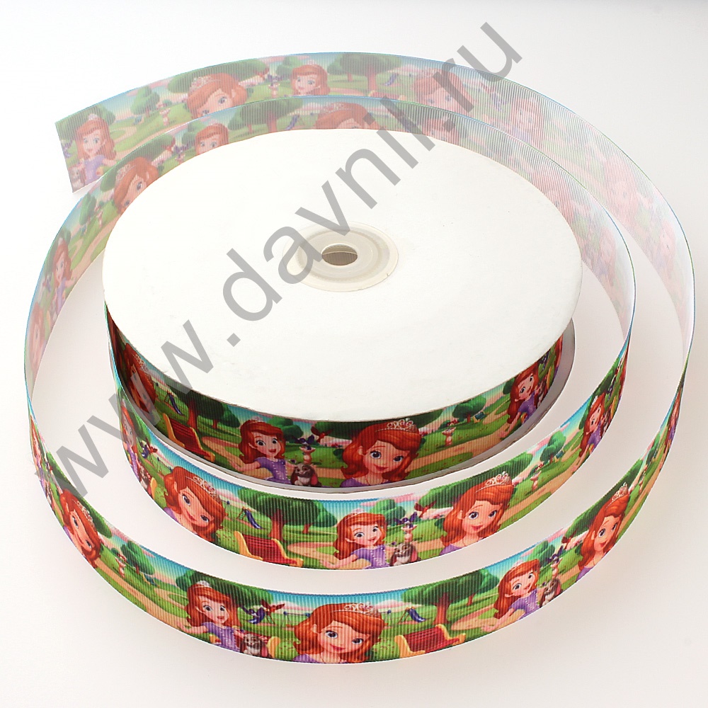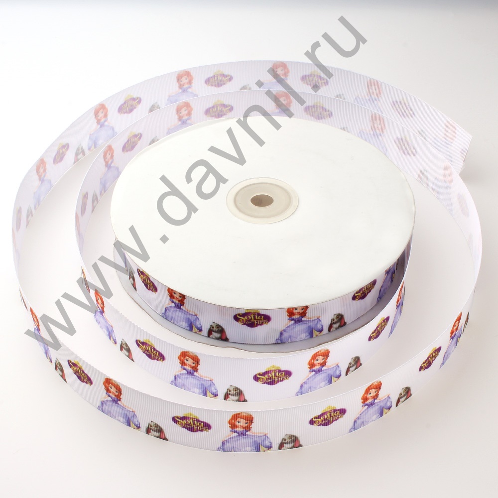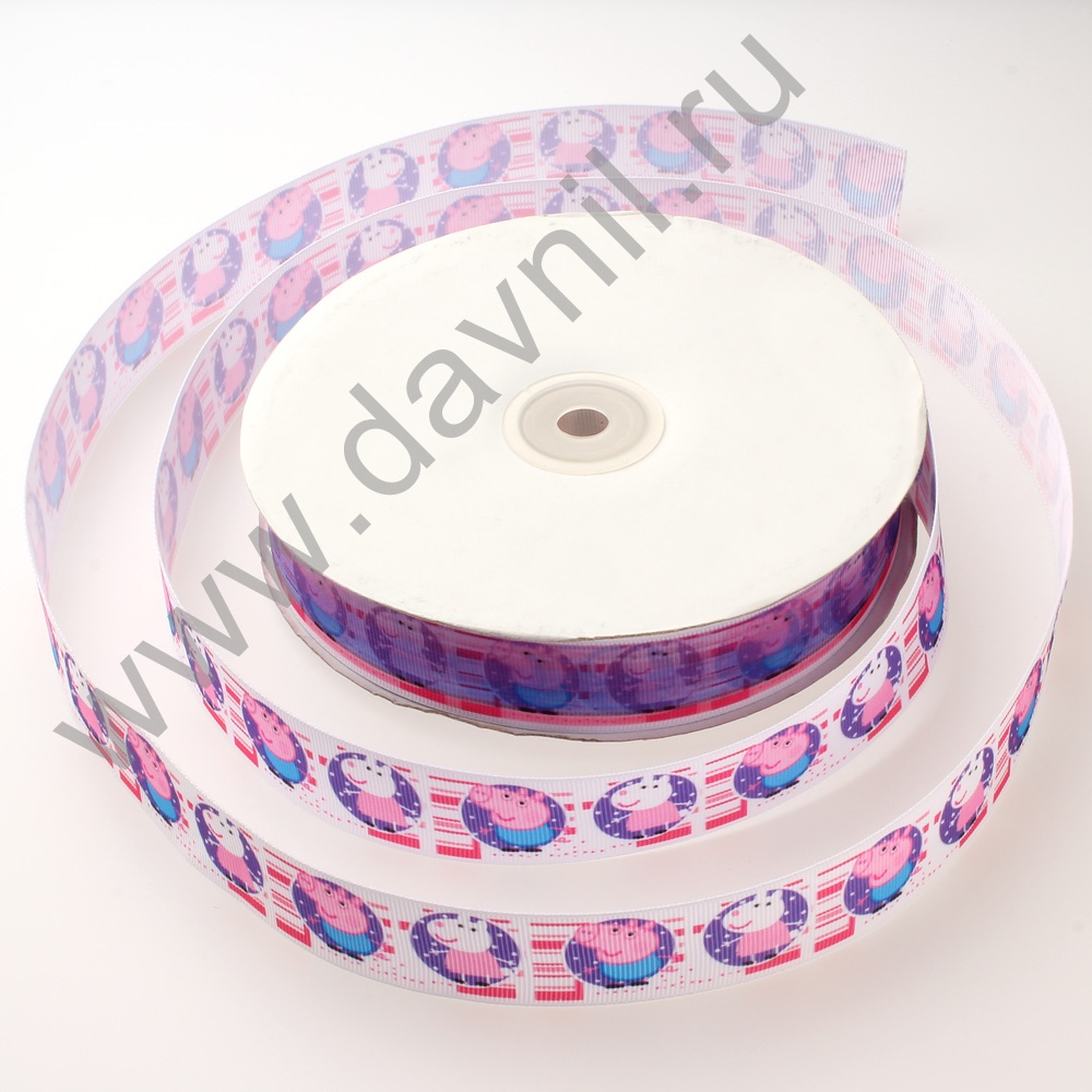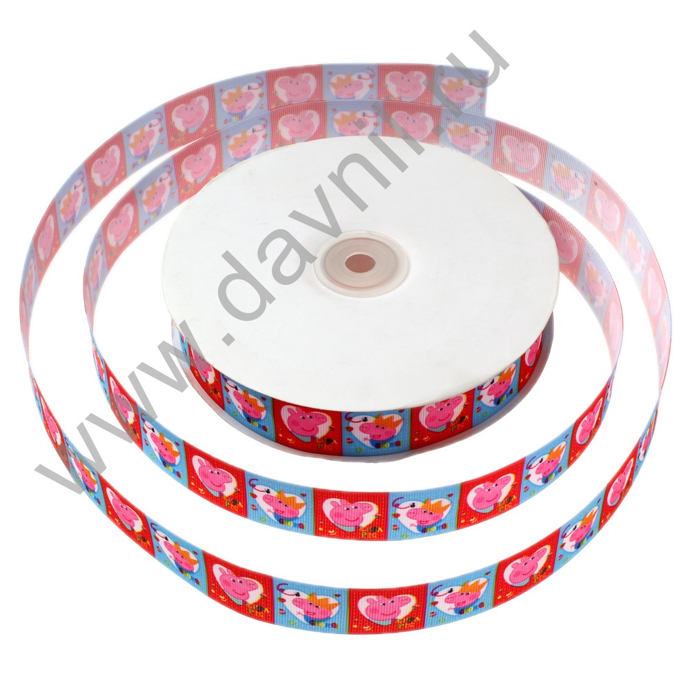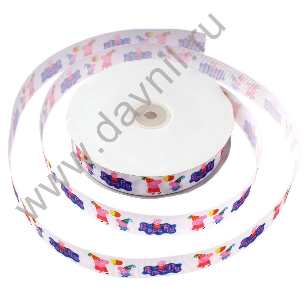 Лента репсовая 2,5 см 5 м с рисунком белая