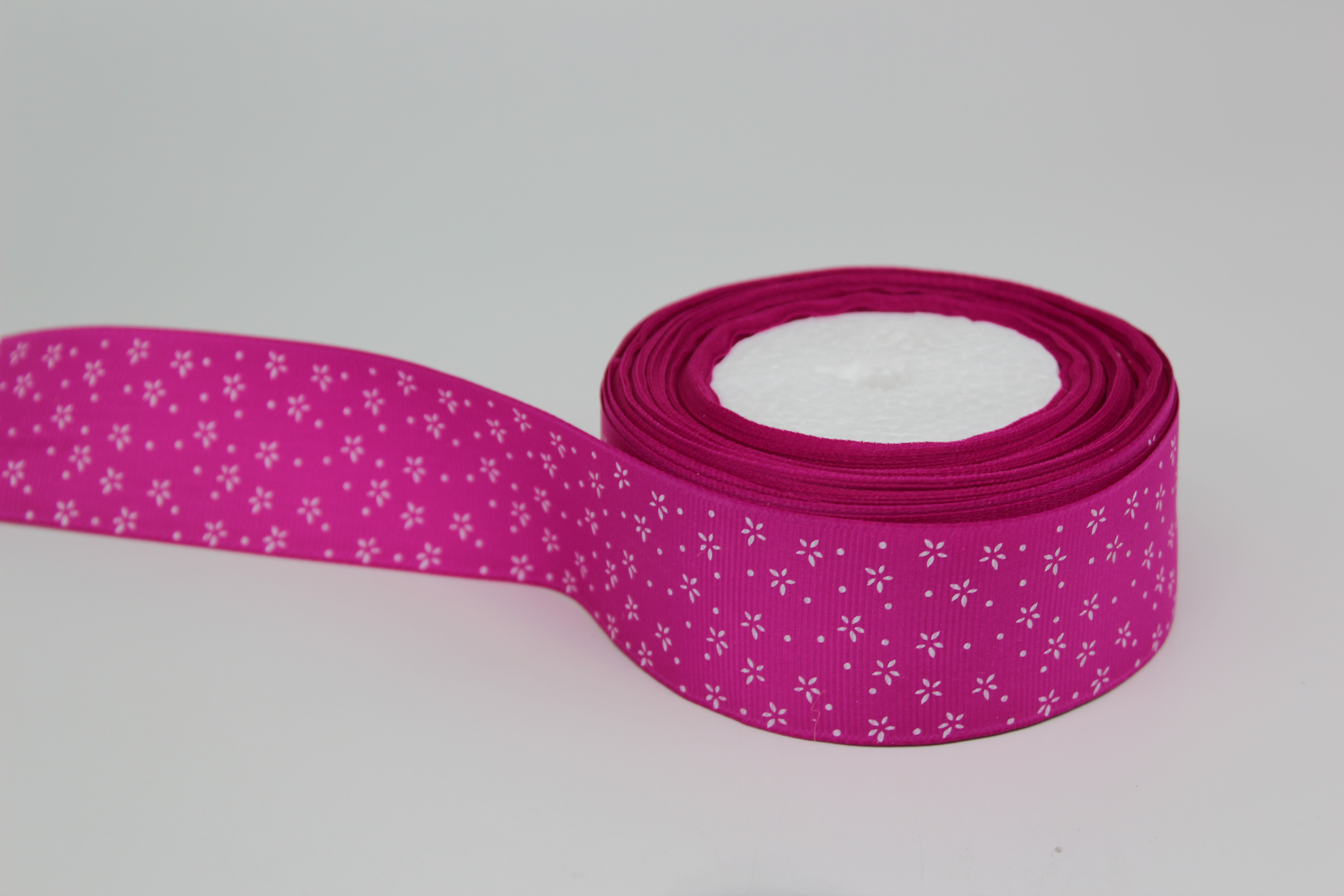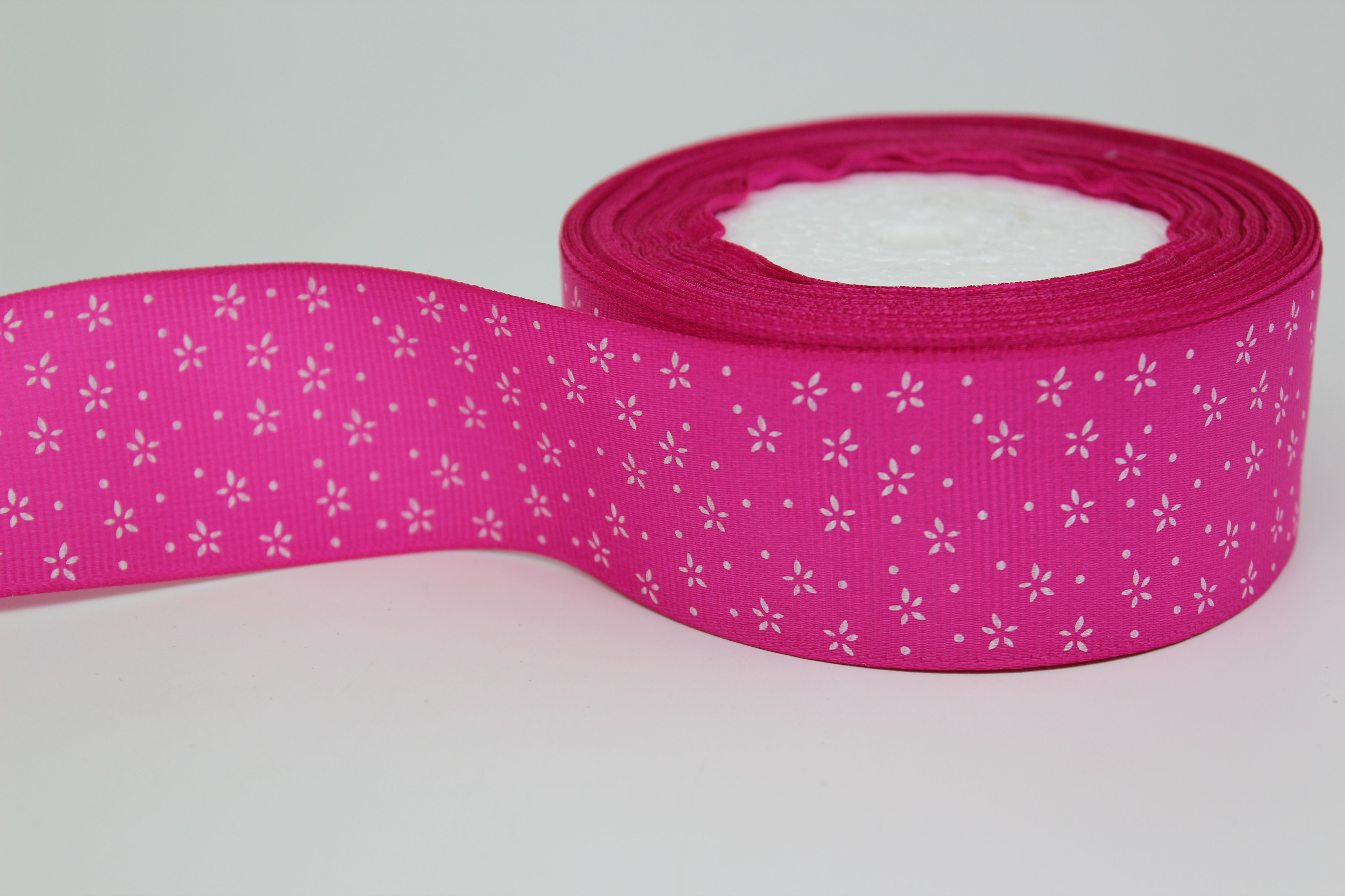 Лента репсовая 4 см 25 ярдов "Мелкий цветок" фуксия 027