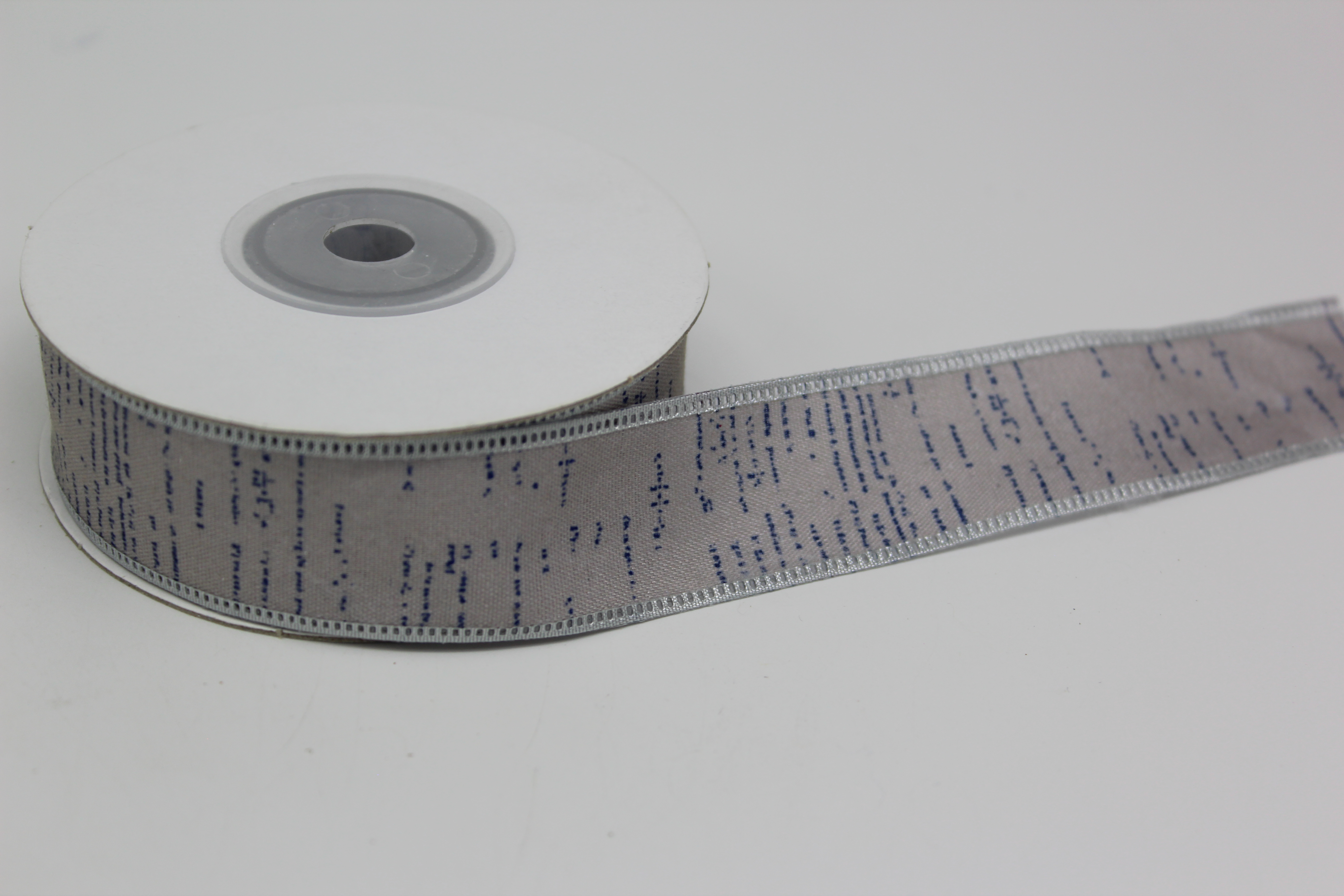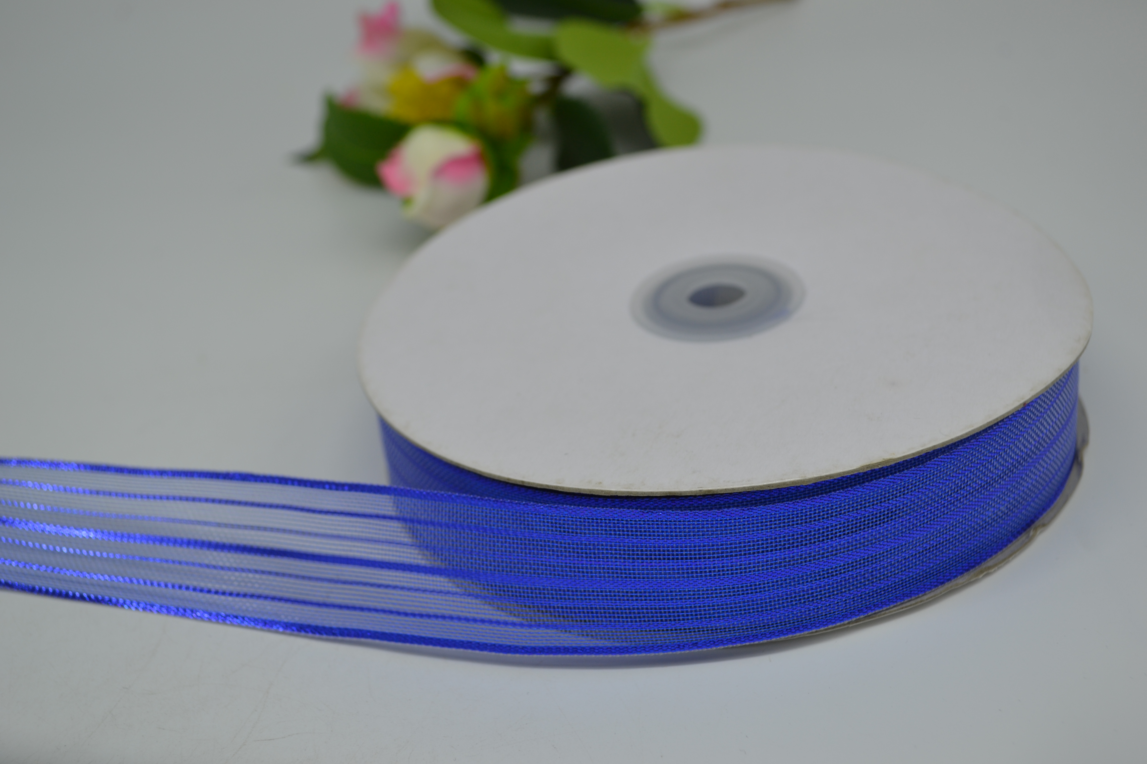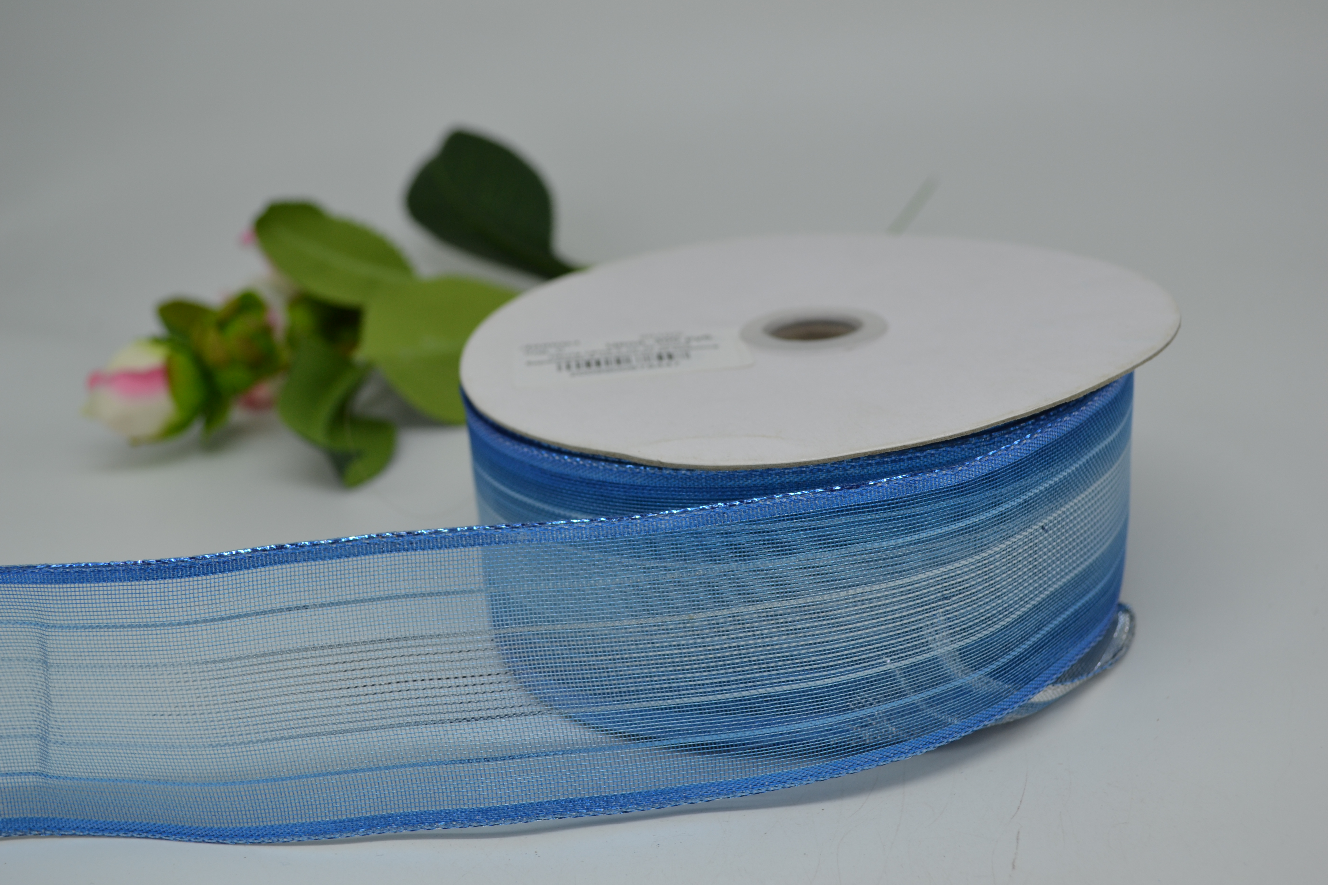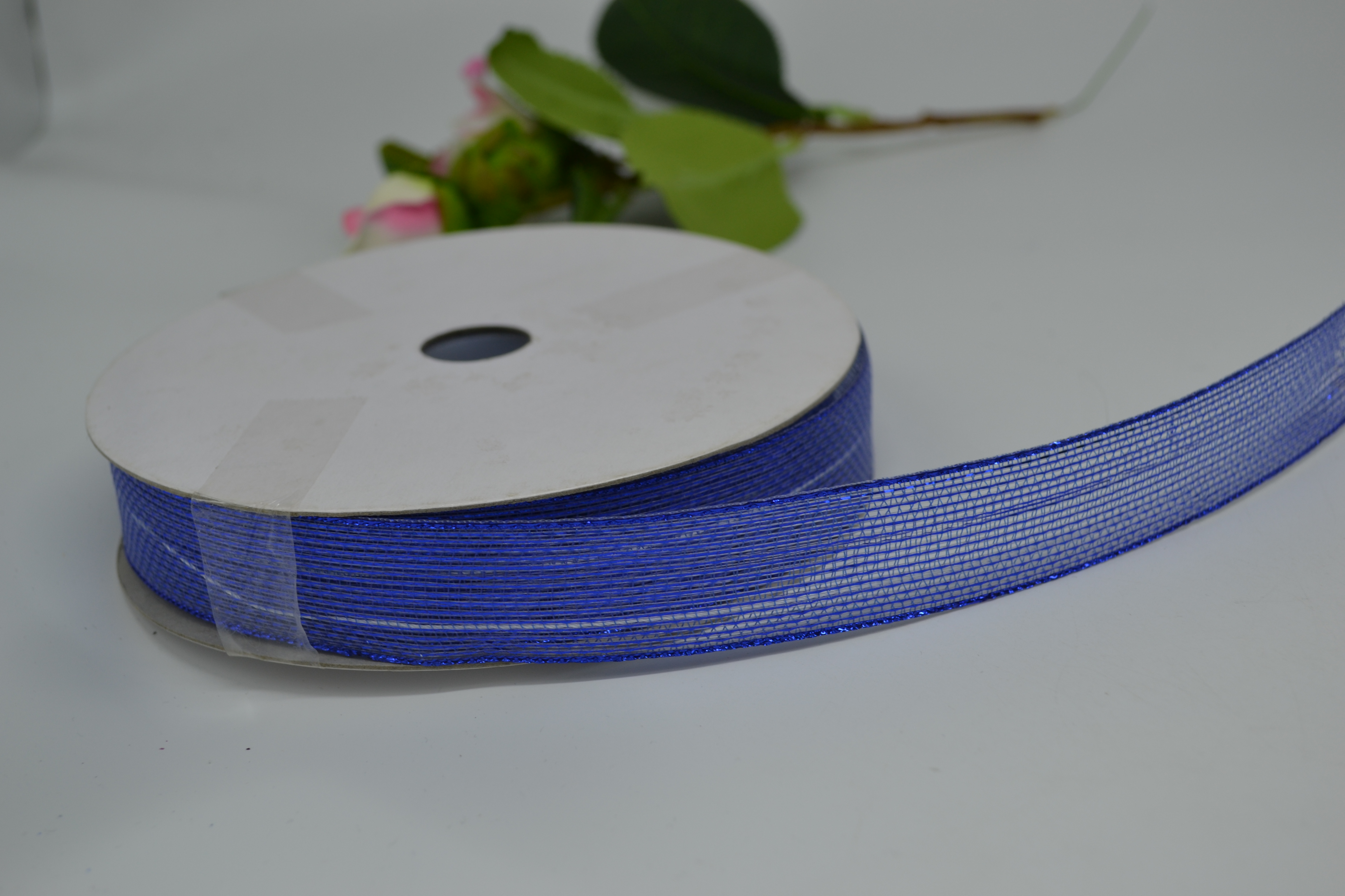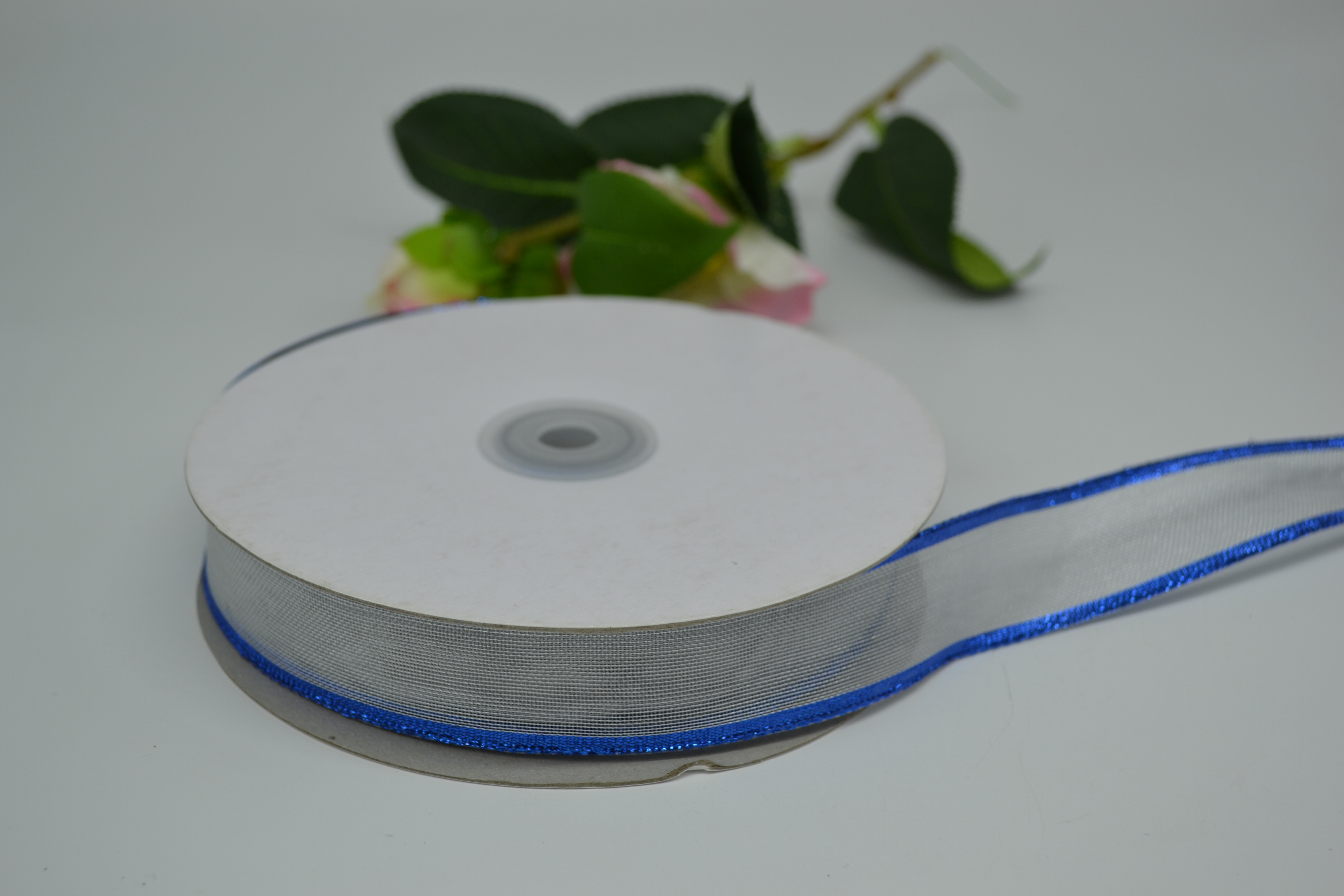 Лента сетка 2,5 см 50 ярдов серебро с синей окантовкой