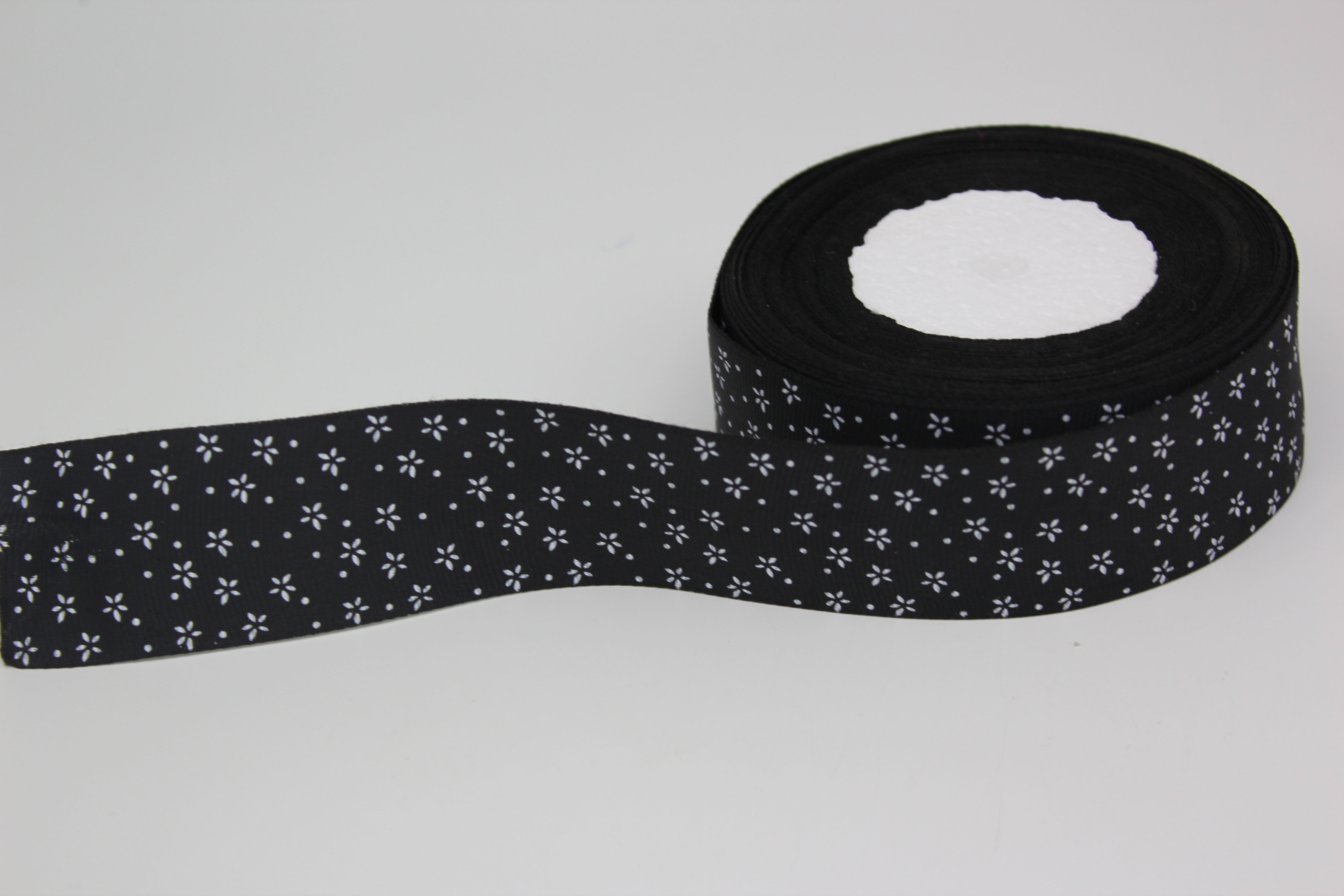 Лента репсовая 4 см 25 ярдов "Мелкий цветок" чёрная 039
