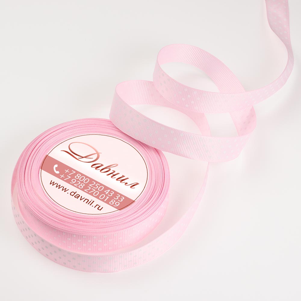 Лента репсовая мелкий горошек 2 см 25 ярдов розовая 004