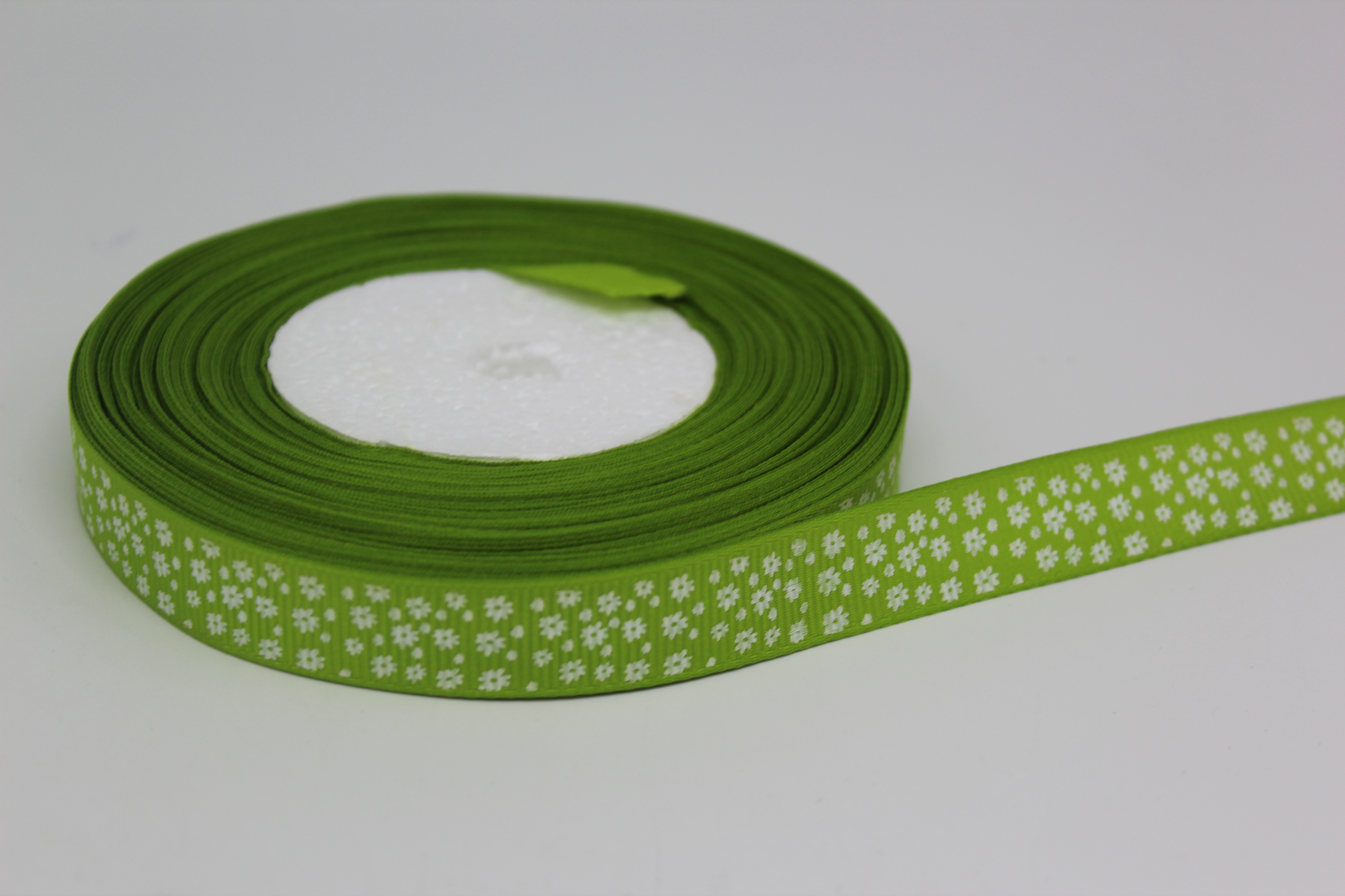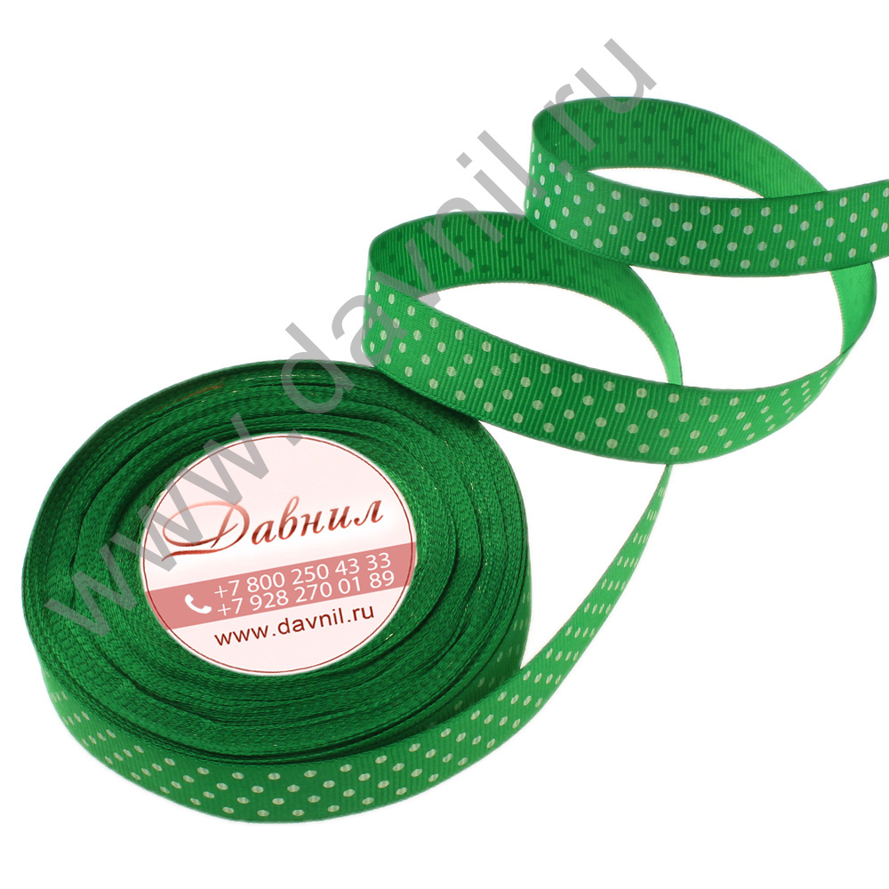 Лента репсовая мелкий горошек 1,5 см 25 ярдов зелёная 19
