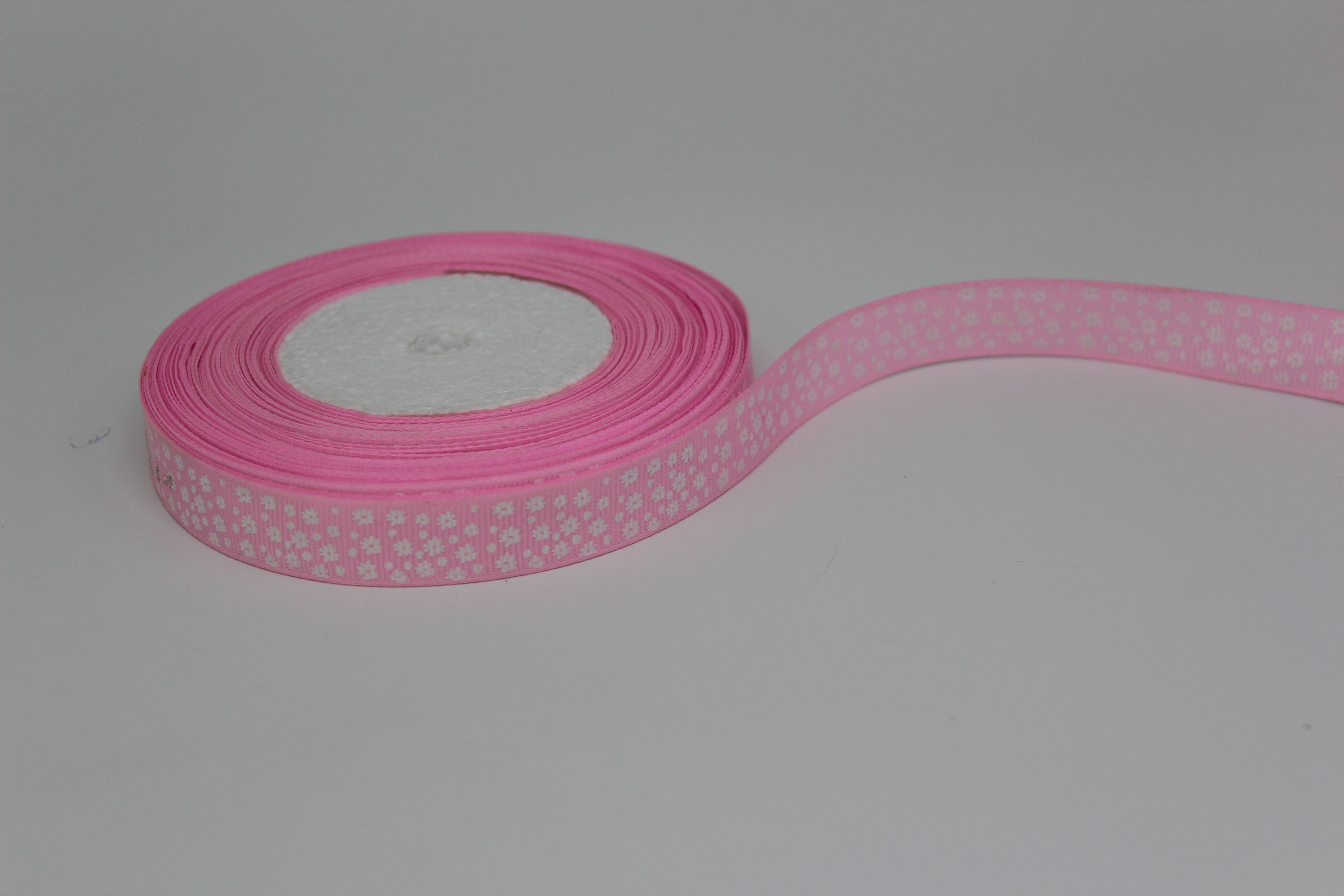 Лента репсовая 1,5 см 25 ярдов "Мелкий цветок" айвори 008