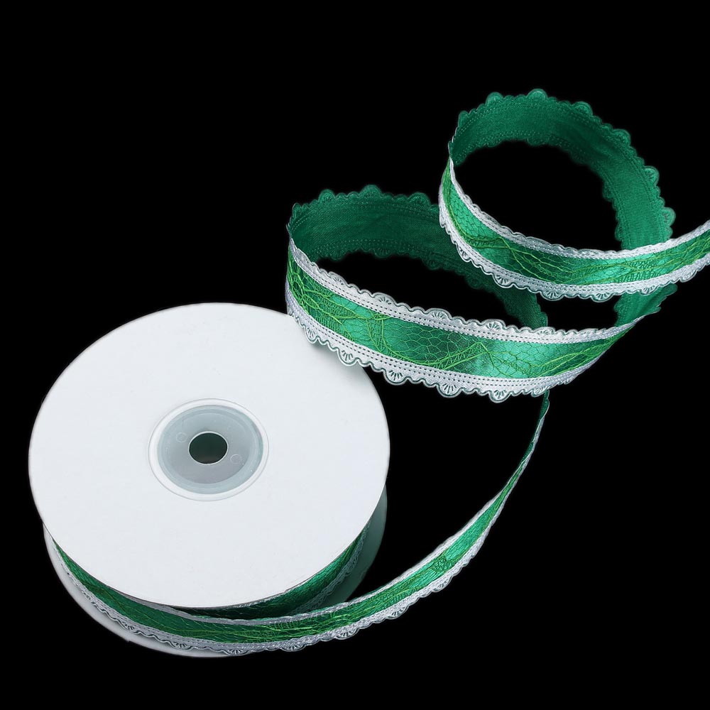 Лента гипюр 2,5 см 15 ярдов с кружевной окантовкой зелёная 13