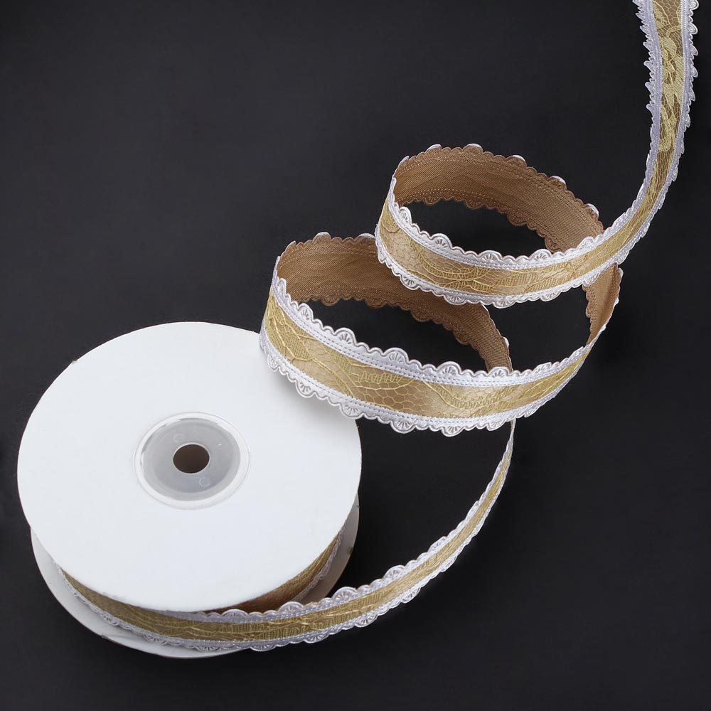 Лента гипюр 2,5 см 15 ярдов с кружевной окантовкой коричневая 11