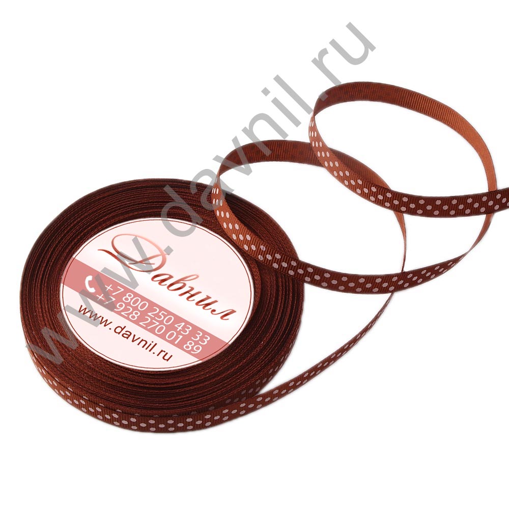 Лента репсовая мелкий горошек 1 см 25 ярдов коричневая 32