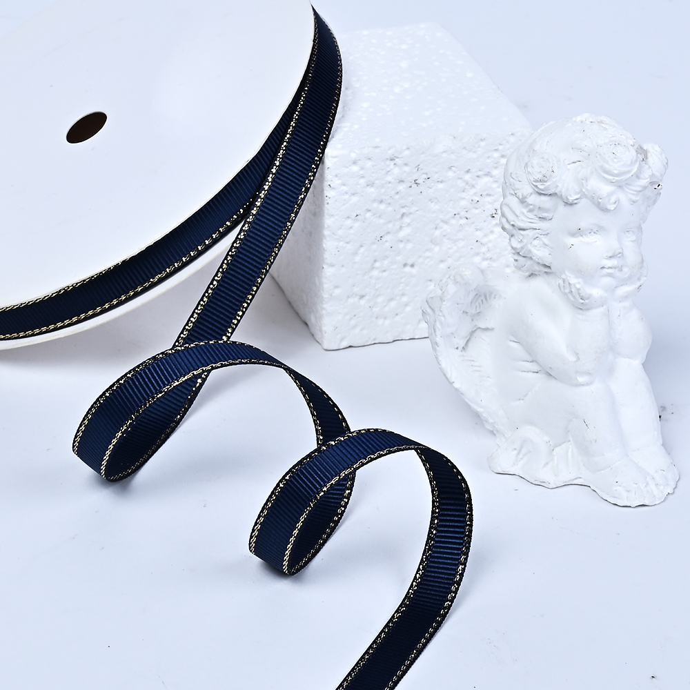 3/8“(9mm)Gold Metallic-Edge Grosgrain Ribbon 370