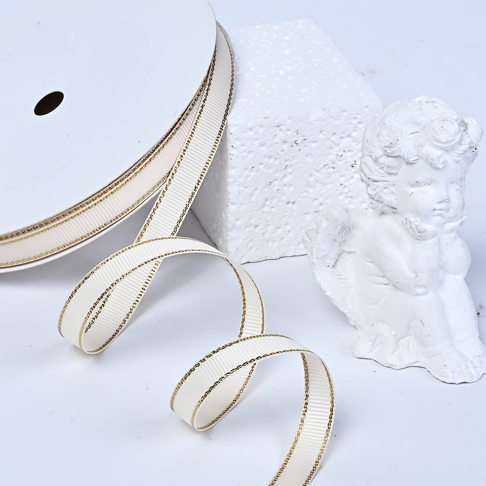 3/8“(9mm)Gold Metallic-Edge Grosgrain Ribbon 815