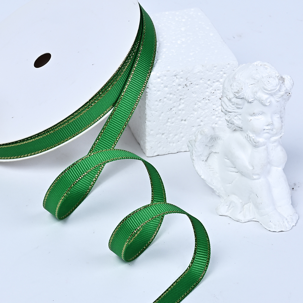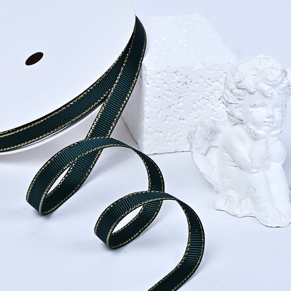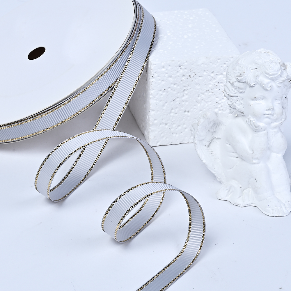 3/8“(9mm)Gold Metallic-Edge Grosgrain Ribbon 007