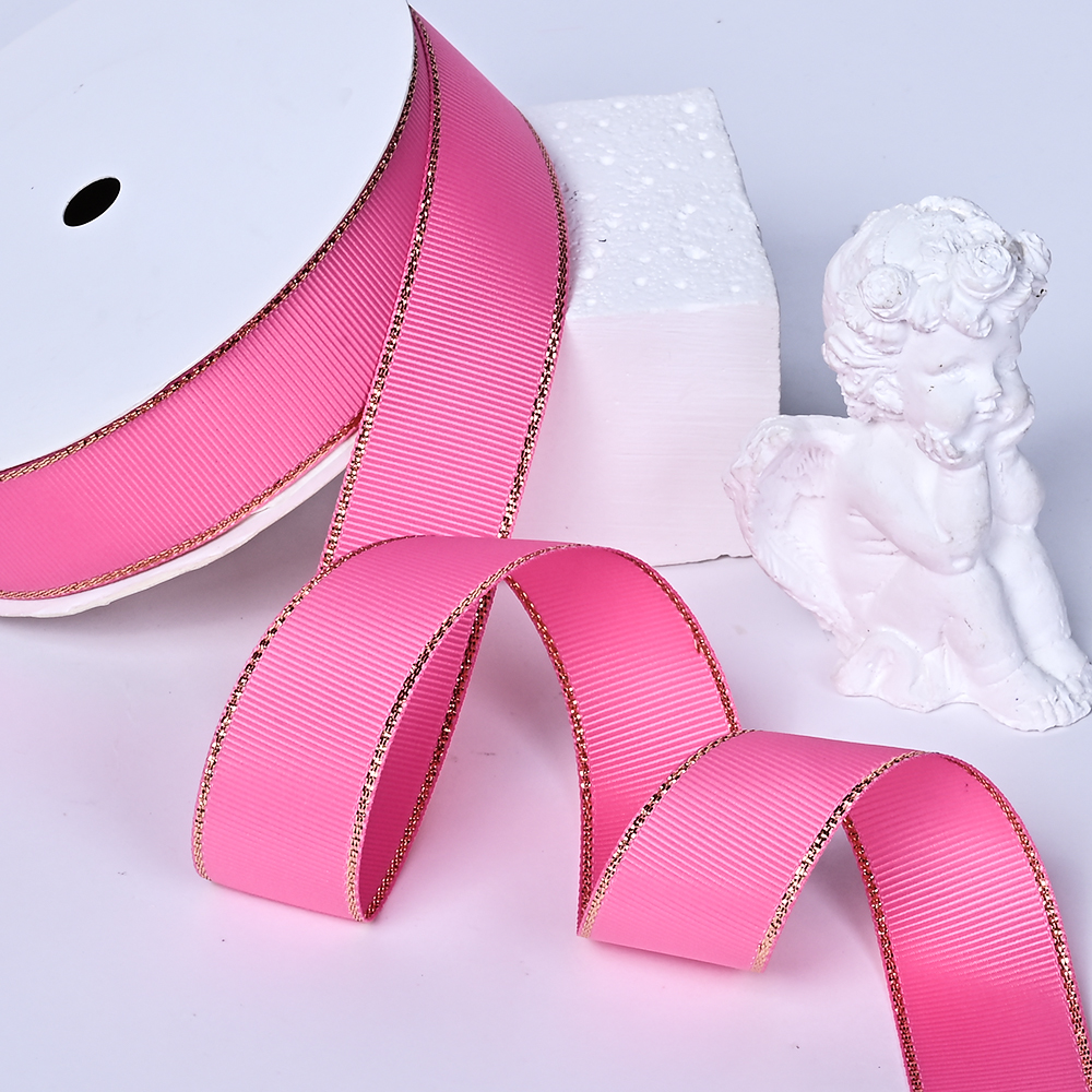 1"(25mm)Gold Metallic-Edge Grosgrain Ribbon 156