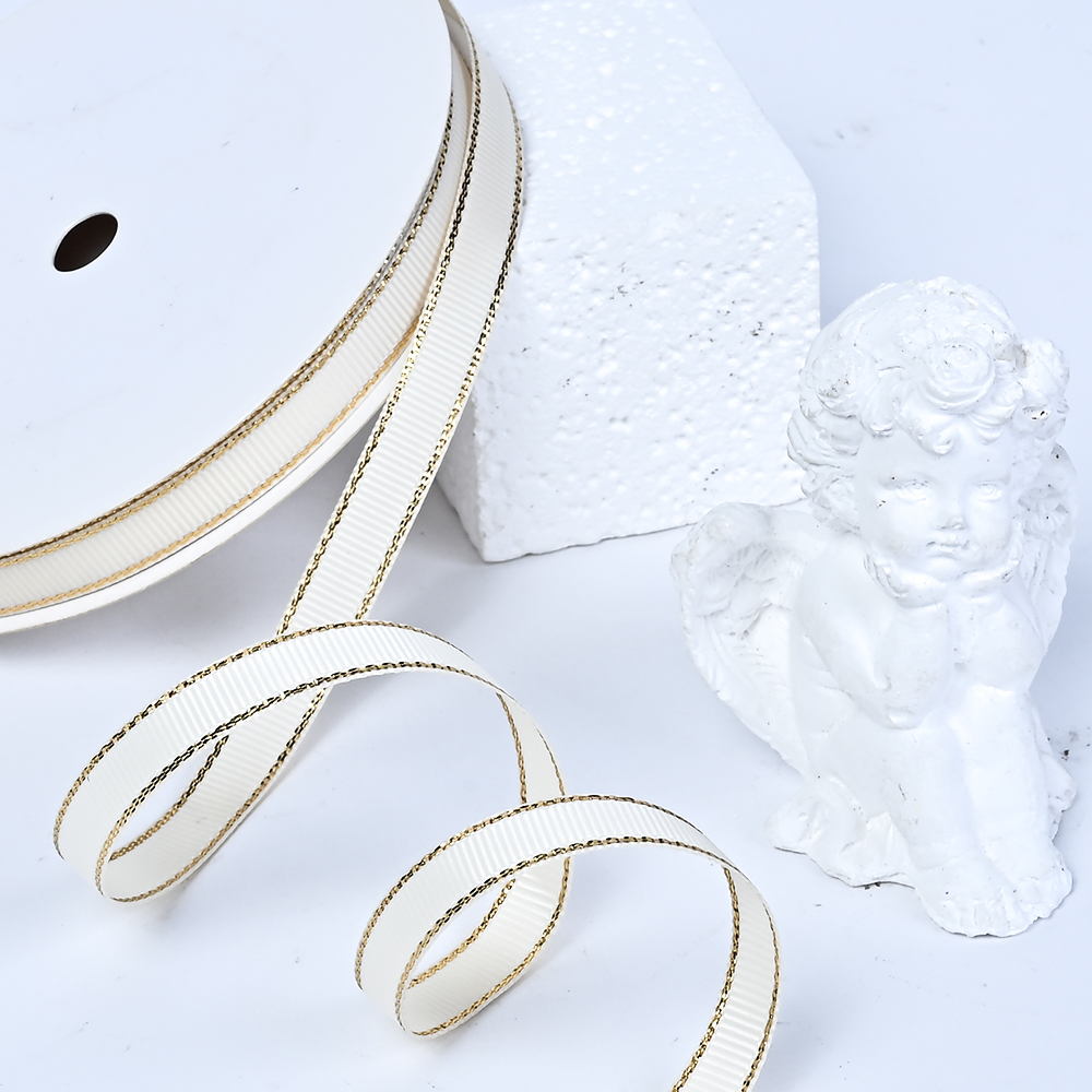 3/8“(9mm)Gold Metallic-Edge Grosgrain Ribbon 028