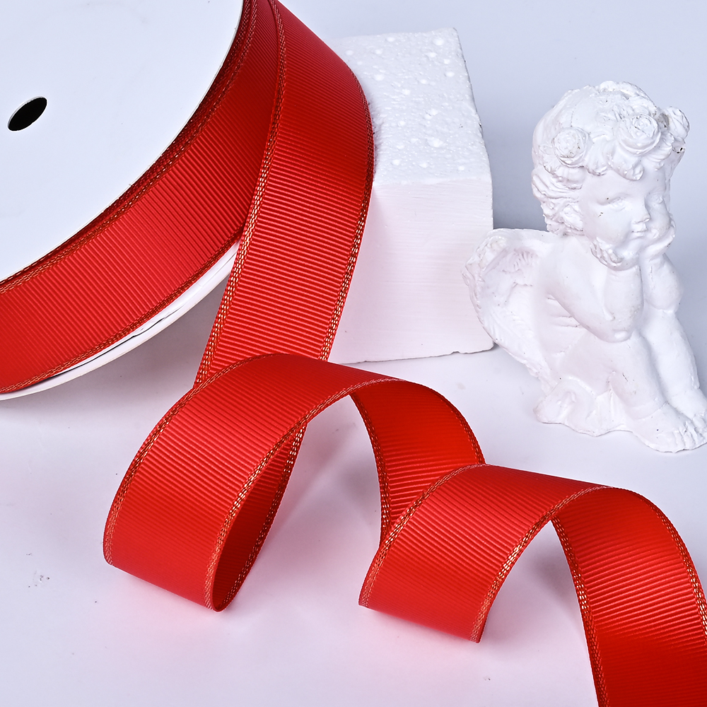 1"(25mm)Gold Metallic-Edge Grosgrain Ribbon 235